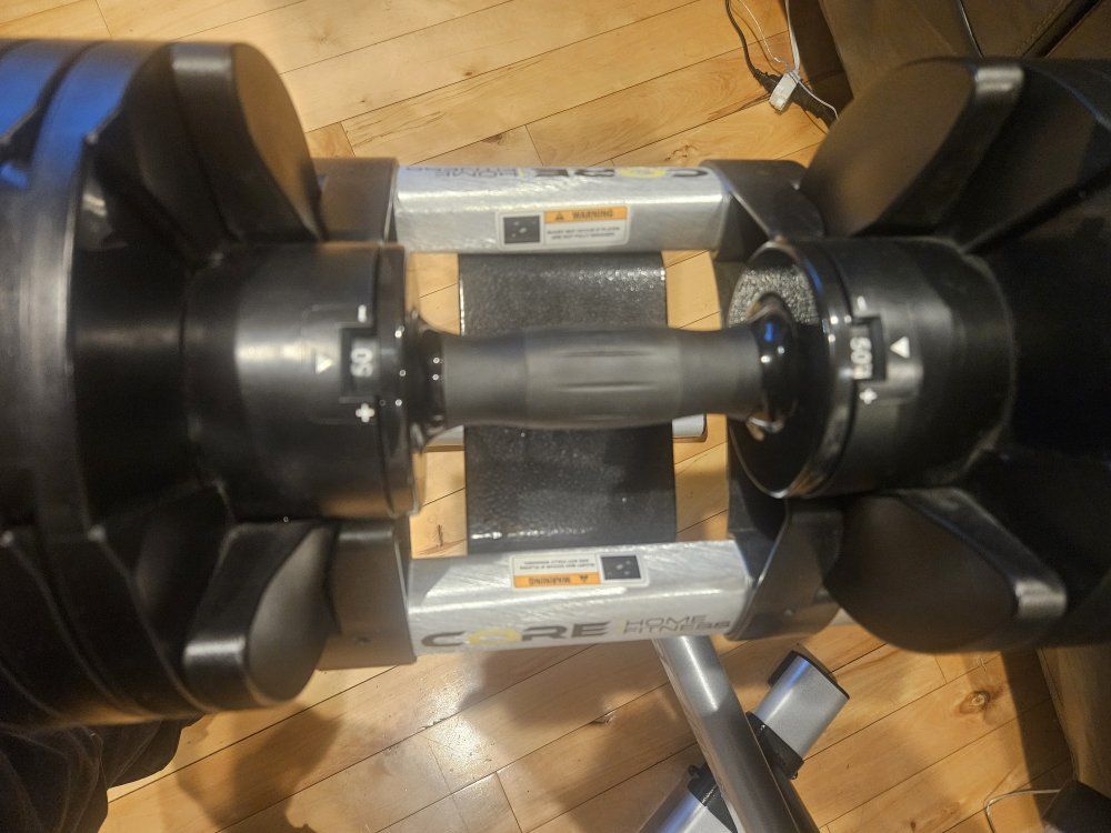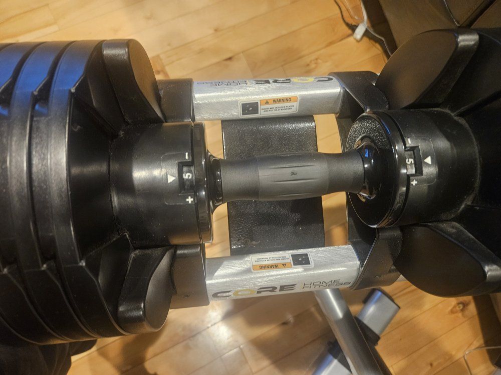570.00 online CORE FITNESS Set of dumbells with rack. adjustable from 5 - 50lbs each