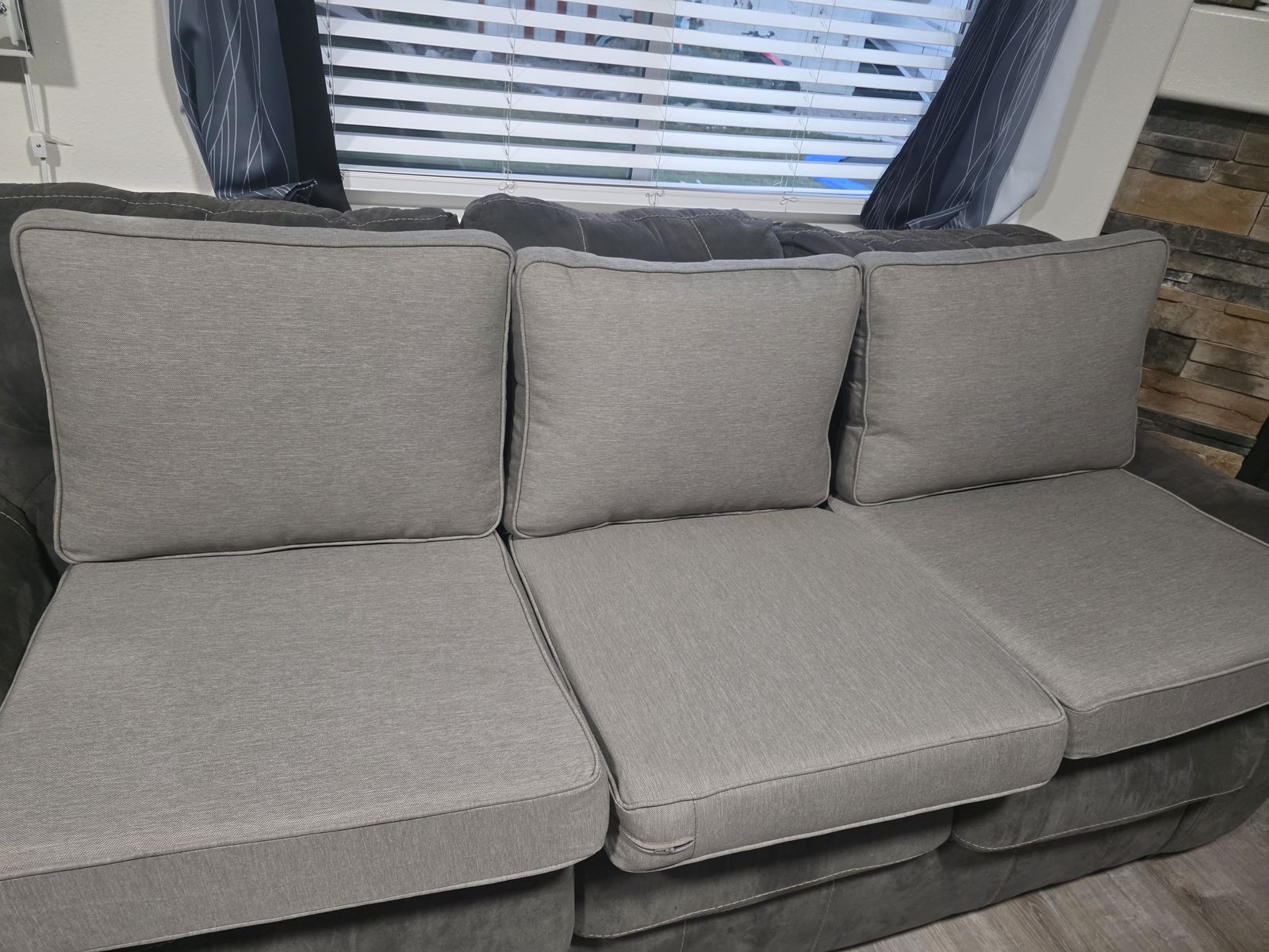 3- outdoor grey cushions will back pillows