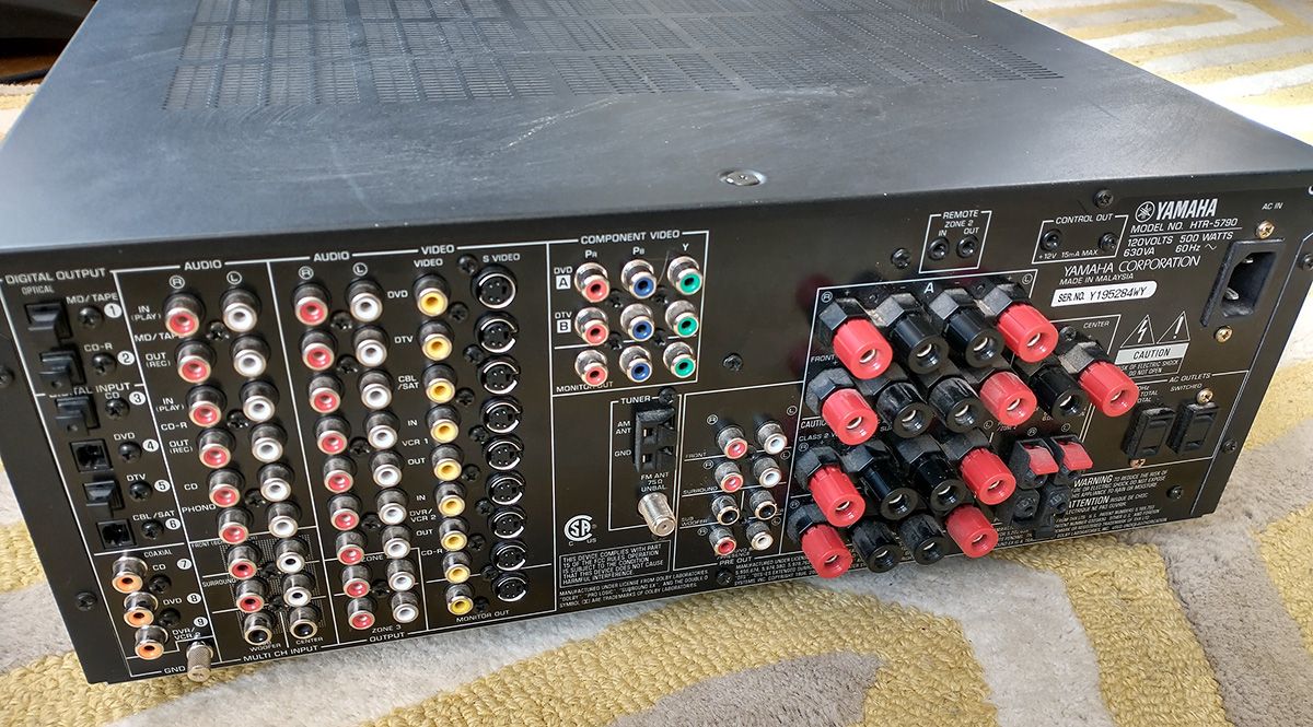 7.1 channel pre-HDMI Yamaha HTR-5790 home theater receiver. 110 watts of amplification per channel (20 Hz to 20 kHz, 0.04% THD, 8 Ω). Digital hookups include 3 coaxial RCA ins and 4 optical inputs with 2 optical outputs. Decodes Dolby Digital and DTS signals perfectly. Includes 5.1 channel RCA inputs and 7.1 channel RCA pre-outs. It even has a phono input for a record player. Comes with a genuine Yamaha remote of similar vintage. Most universal remotes can also be programmable to work with it. The user manual is available for free on the Yamaha website in PDF format. Does include the correct power cord.