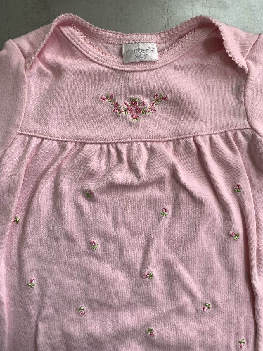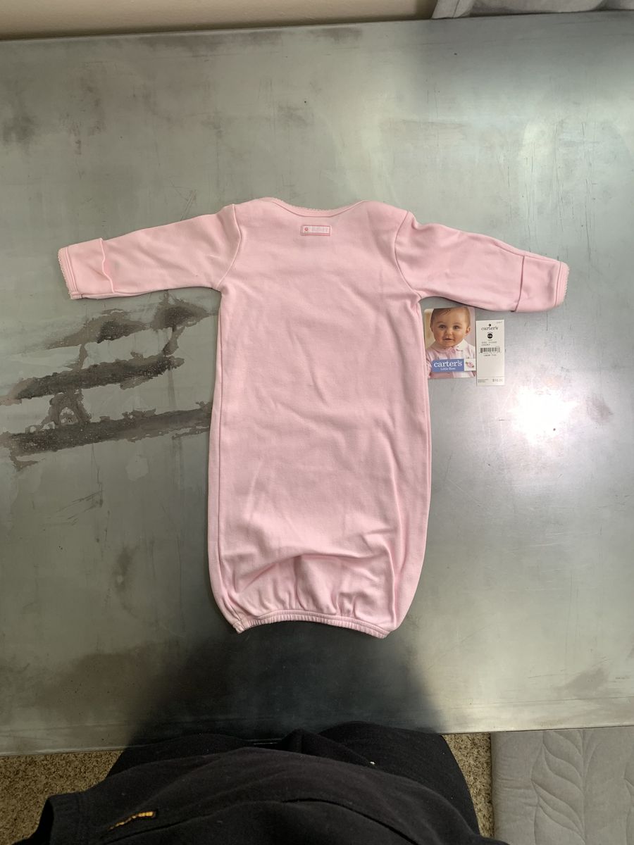 New Carter's baby girl gown. Pink with pretty embroidered flowers on chest. Little flower buds scattered all over. Long sleeve. Has elastic bottom.