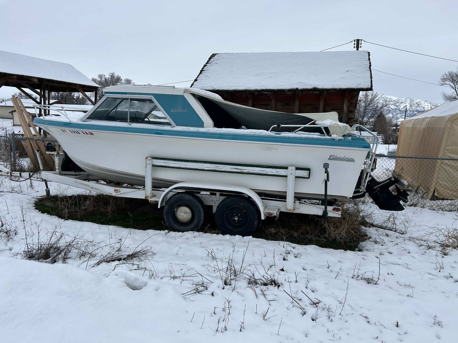 1968 Fiberfoam 21’ boat. 6 cyl Mercruiser engine. Needs battery, fuel pump, carb rebuild, and sump pump. Project that I never get to and would like gone.