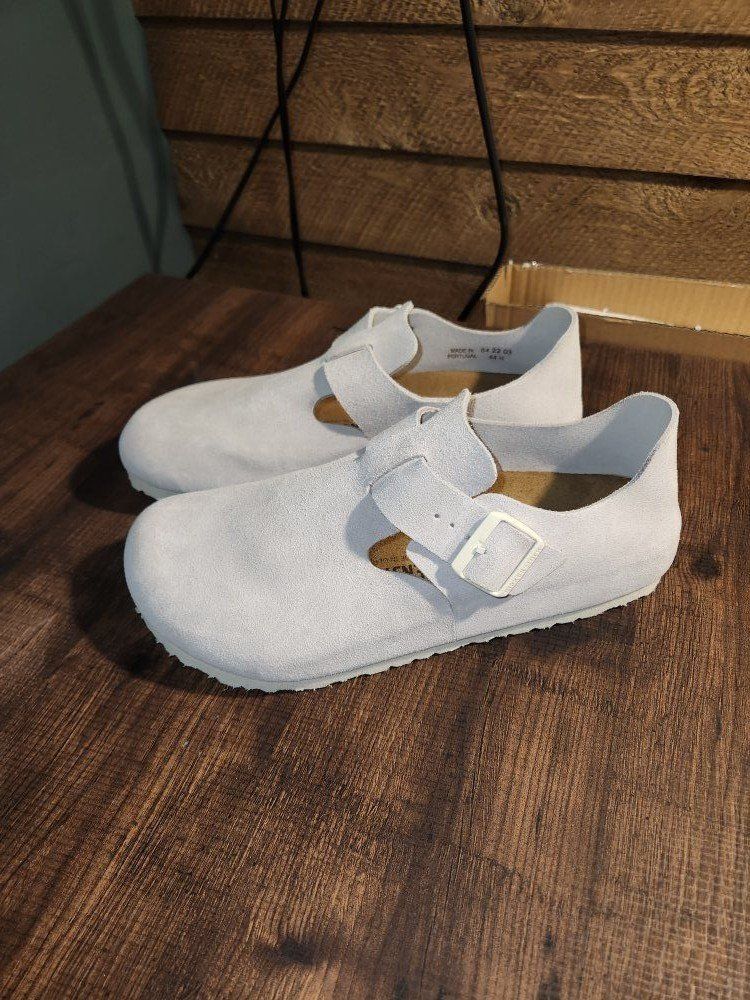 Size 44 antique white suede. Brand new. Never worn other than to try on. These are not bright white if that's what you're looking for. Asking $130 OBO. Messaging works best.