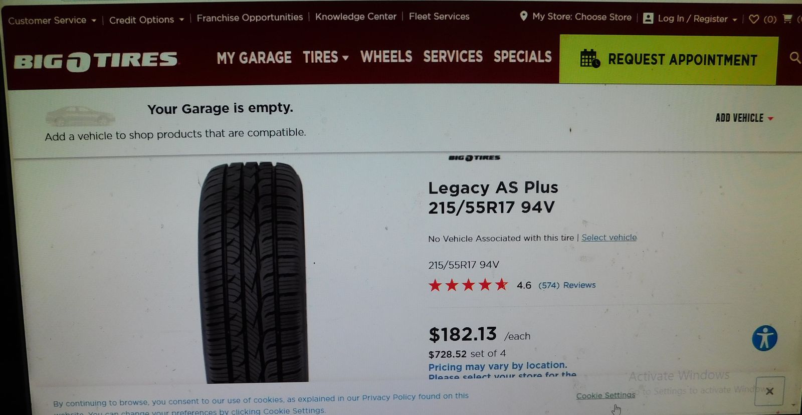 Set of 5 215 55R 17 Big O Legacy all season plus like new $180 for set of 3 $60 per tire Big O $182 per tire 3 for price of 1 and 2 Big O Legacy good shape a lot of tread left for free must see