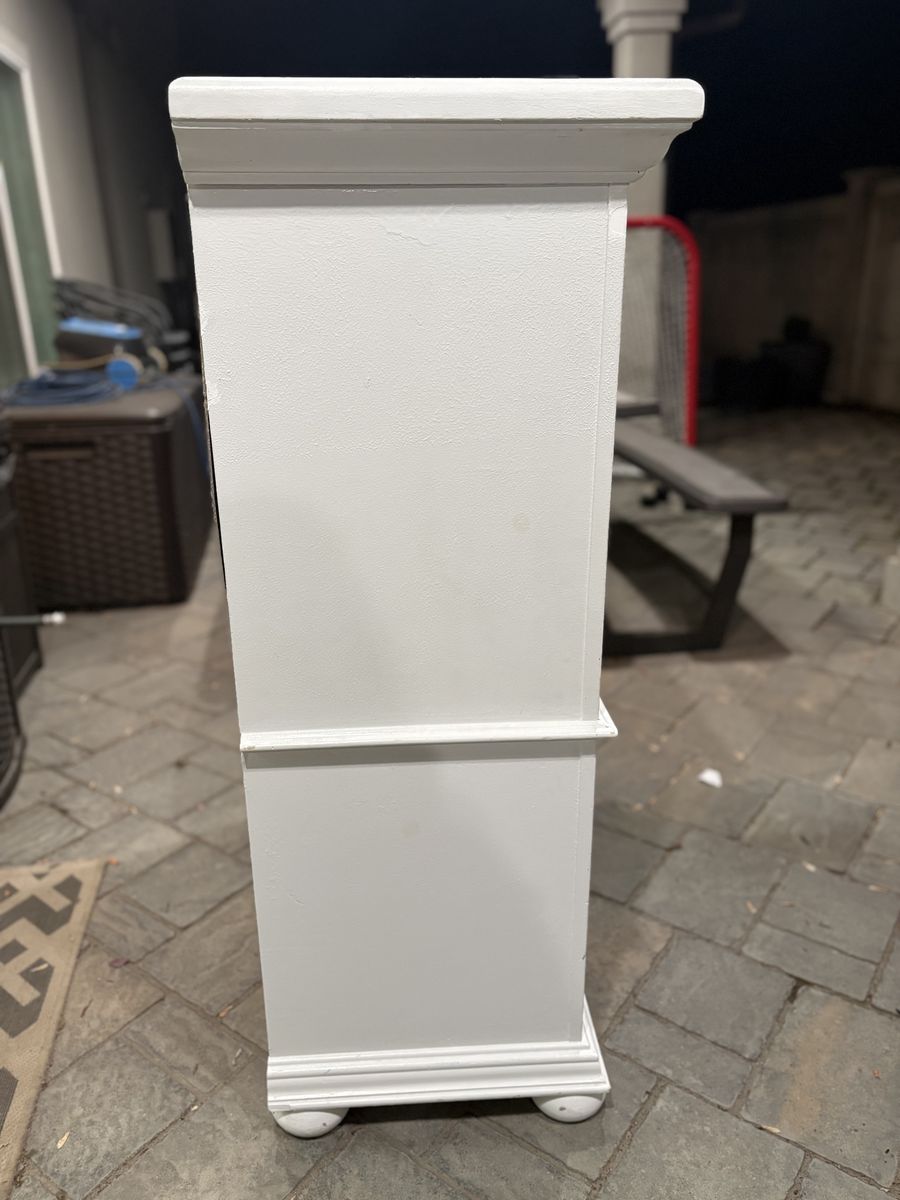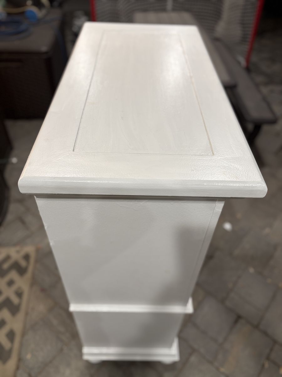 ApplePaySturdy dresser. Working drawers, new knobs. Dimensions: 48 h x 36.5 w x 16 d. Peeling paint and a few marks on the front and top. Price reflects condition.