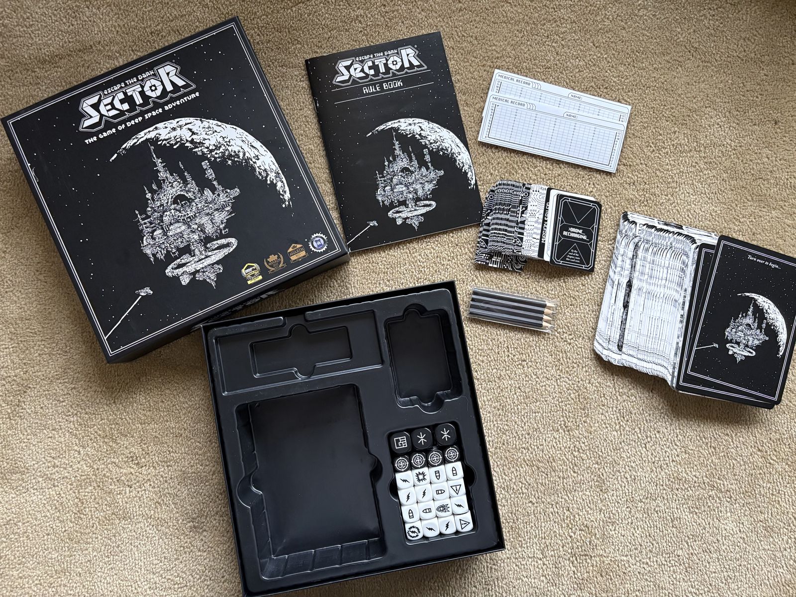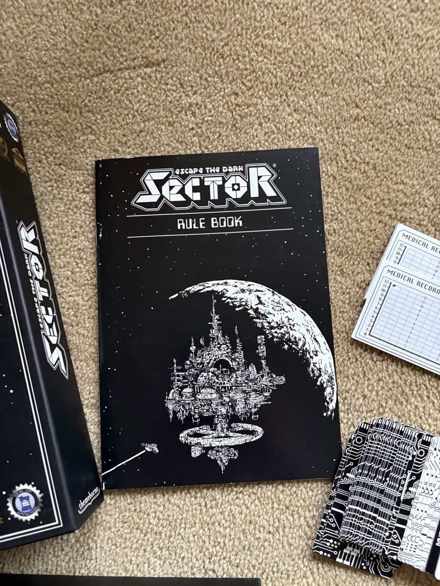 COMPLETE Sector: Escape the Dark. The game of deep space adventure. Award-winning, high-quality game by Themeborne, 2023. 1-4 players, ages 14+. Complete, no missing pieces. Text only. Cash or Venmo.