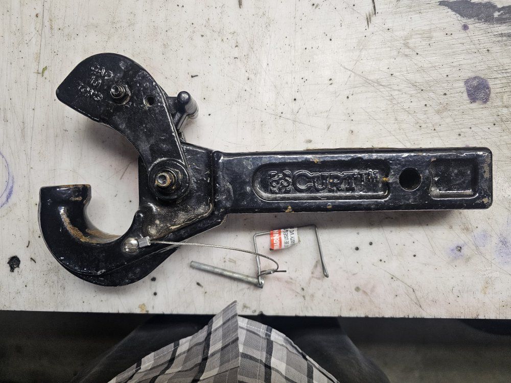 Very lightly used Curtis forged pintle hook. The pintle hook moves freely and locks up. The unit slides into standard 2-1/2 inch reciever.