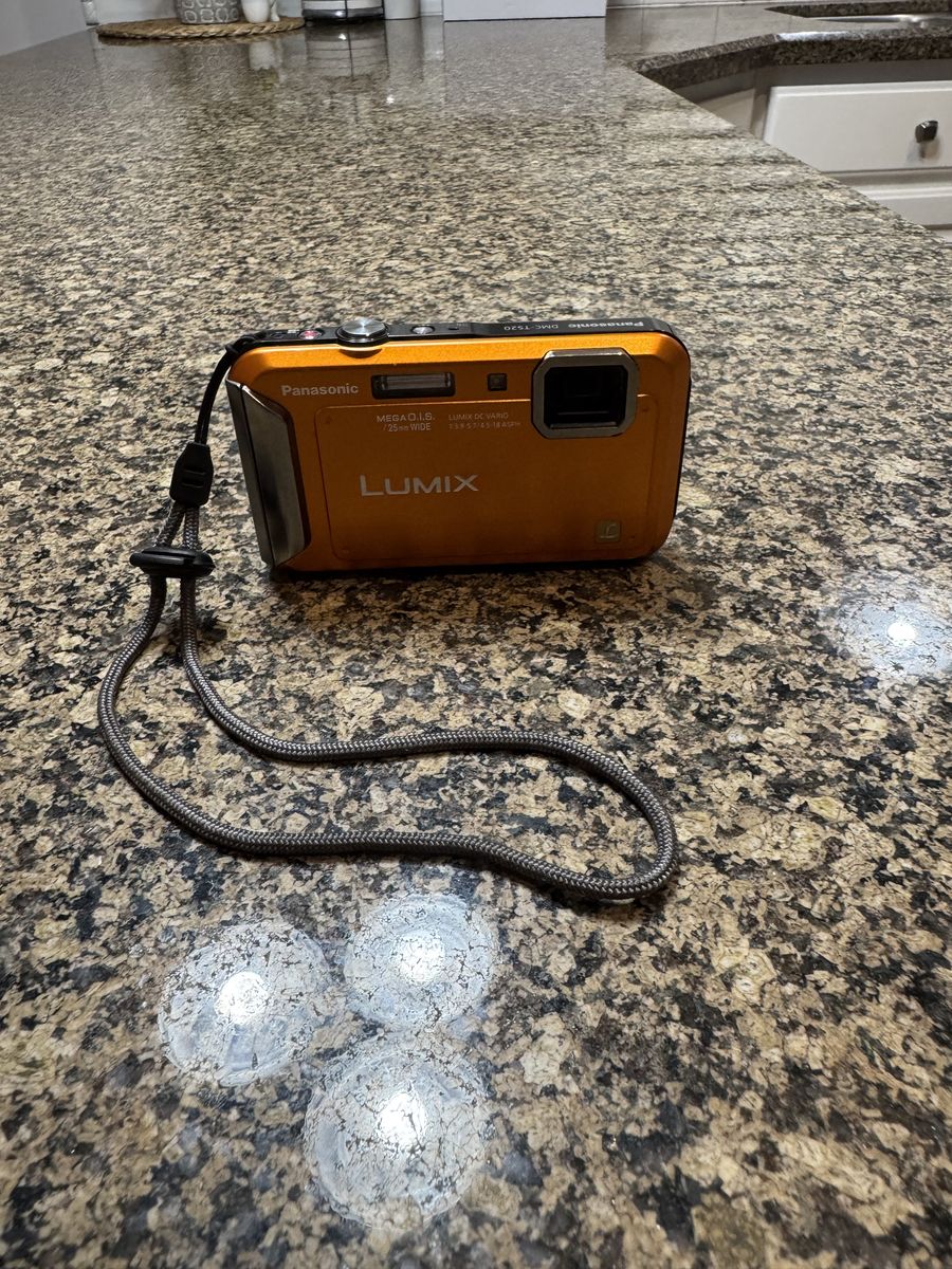 Panasonic DMC-TS20 rugged digital camera in good condition. Fully functional Includes battery and SD card Turns on and takes photos perfectly Waterproof & shockproof design – great for trips, outdoors, or kids