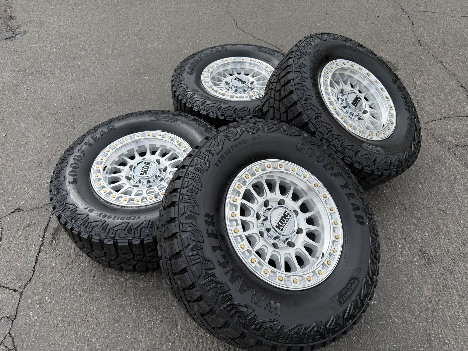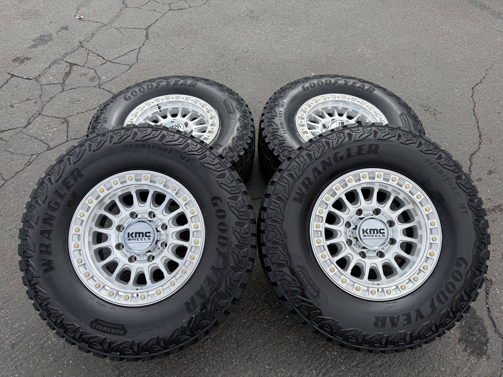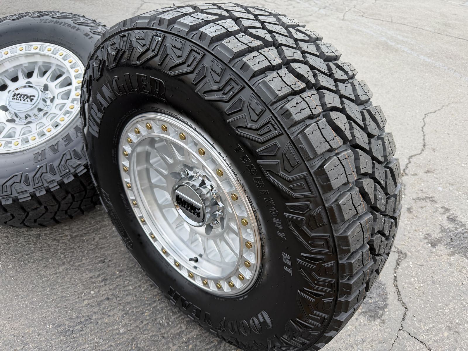 Tires are Goodyear Wrangler Territory M/T 305/70R18 which is roughly 35x12x18 10 ply Load Range E 126 load rating 80 psi rated