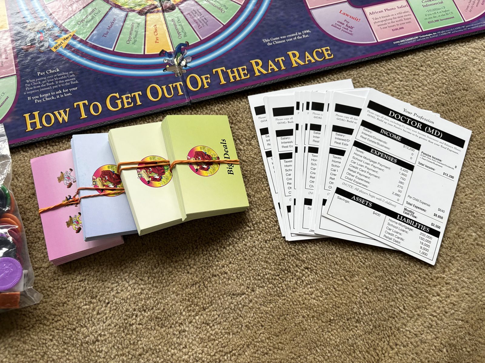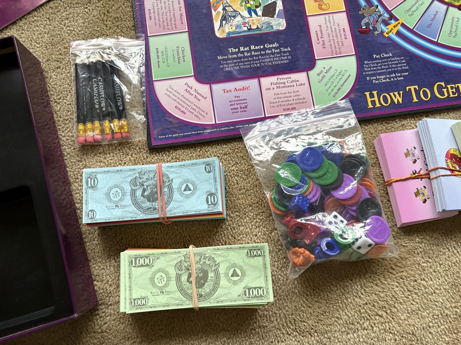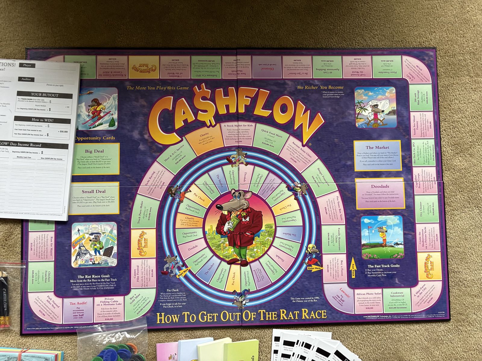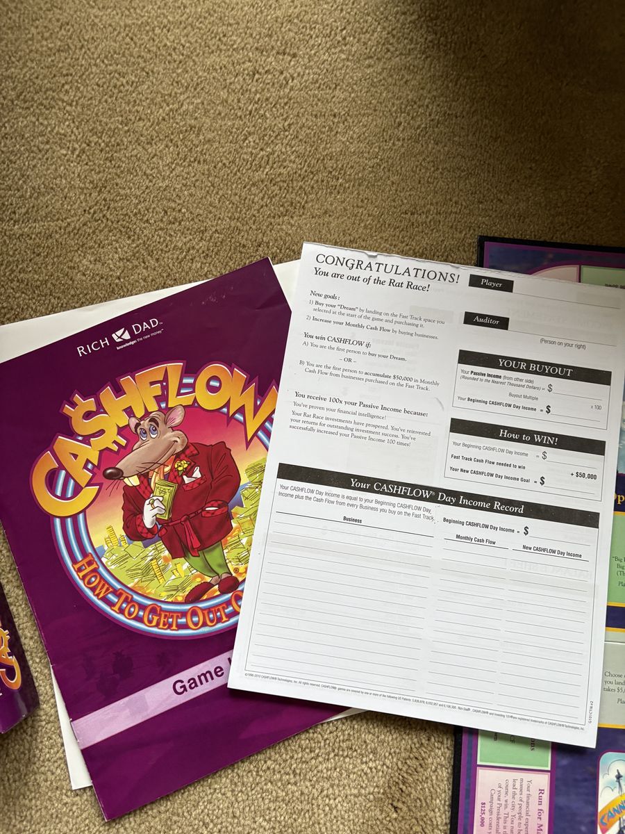 COMPLETE Cashflow Board Game: How to get out of the rat race. Investing 101, a game of learning financial literacy. By Rich Dad, 2010. Complete, no missing pieces. Excellent condition. Text only. Cash or Venmo.