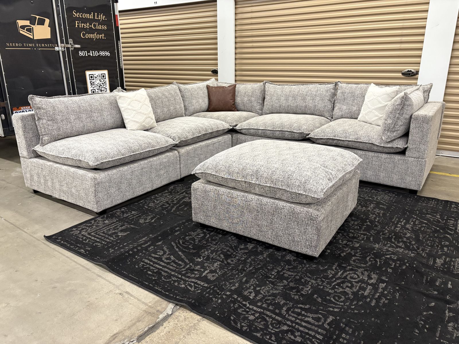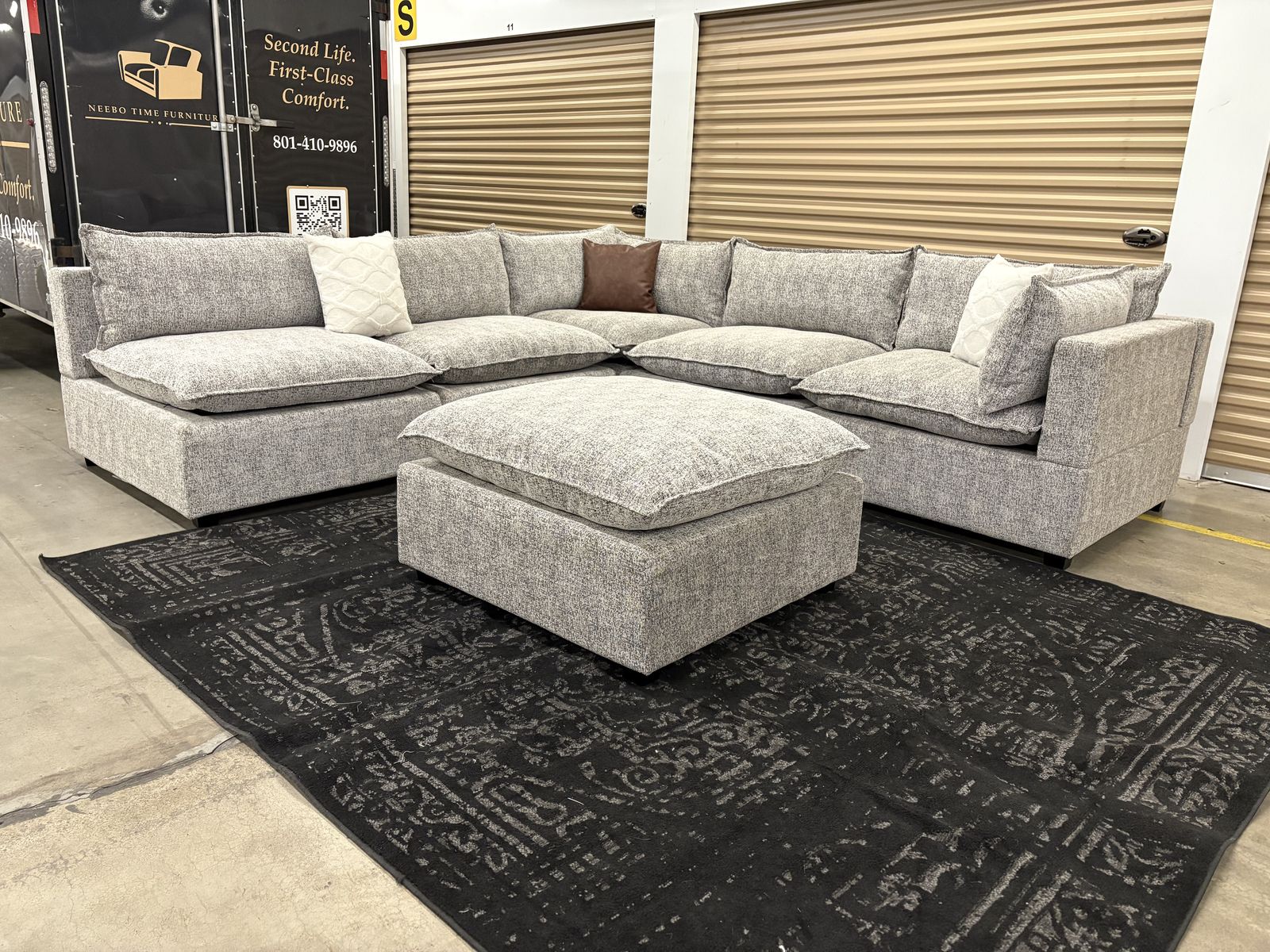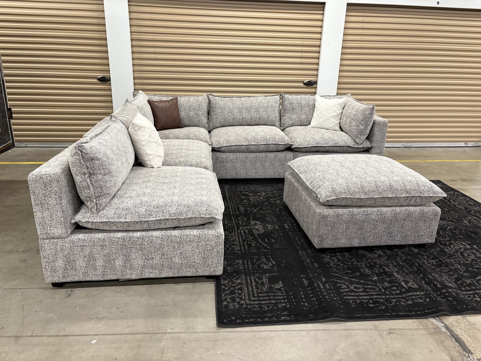 Beautiful oversized pit sectional in great condition! No rips, stains, or damage. Features extra-deep seating with very comfortable down-filled cushions. All seat and back cushion covers were removed and machine washed, so it’s clean and ready for a new home. Perfect for lounging, movie nights, or large living spaces. Modular design allows different layout options.