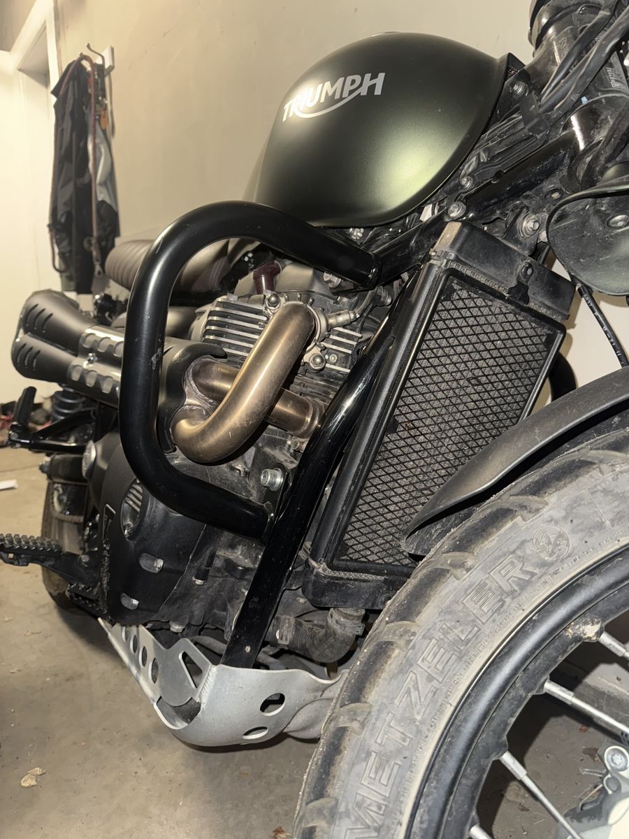 Slammer Tuck N Roll Gel Seat CRG Bar End Blindsight Mirror Hepco & Becker Engine Guards ASV F3 Unbreakable Standard Clutch Lever Titanium Exhaust Wrap (can be removed upon request) LED Underglow (can be removed upon request) USB Charging Hub Triumph High Mudguard Kit Fork protectors Headlight guard
