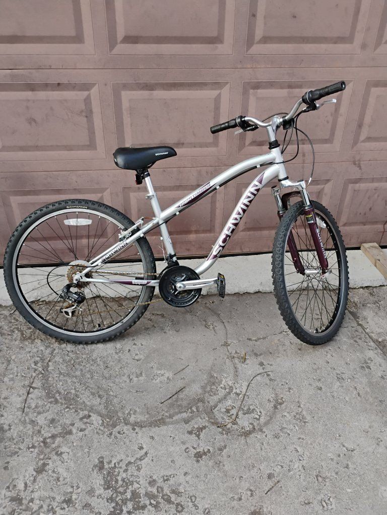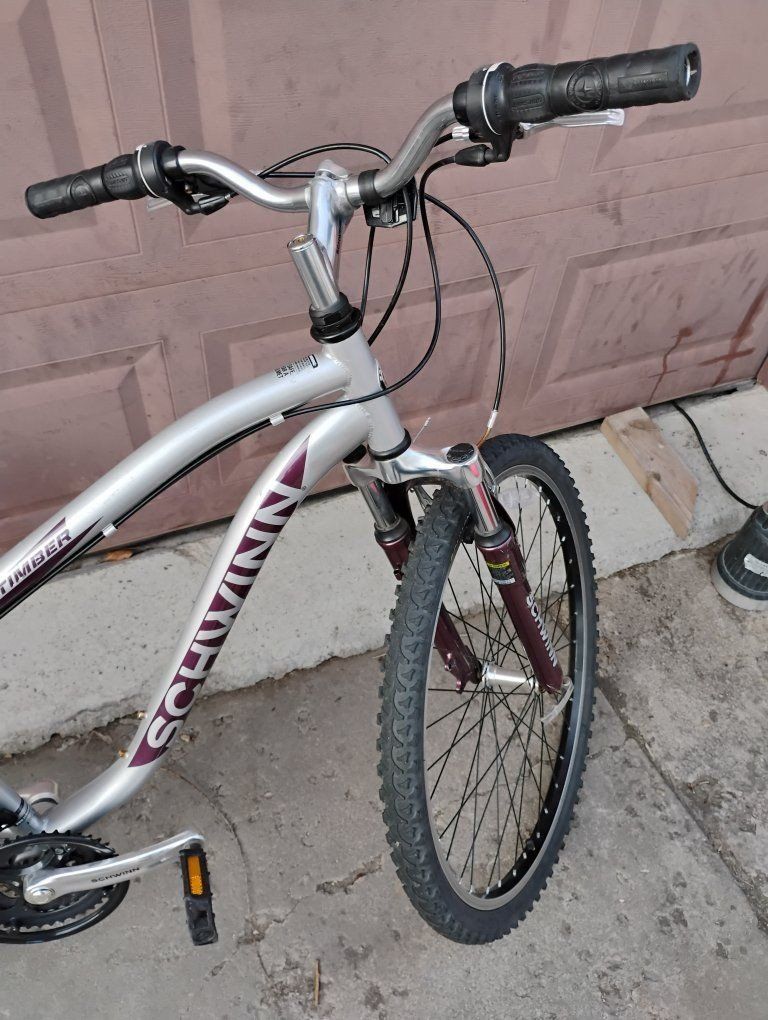 VenmoHas front suspension,W/Shimano Grip Shift. Nice bike. see pics. Silver in color.
