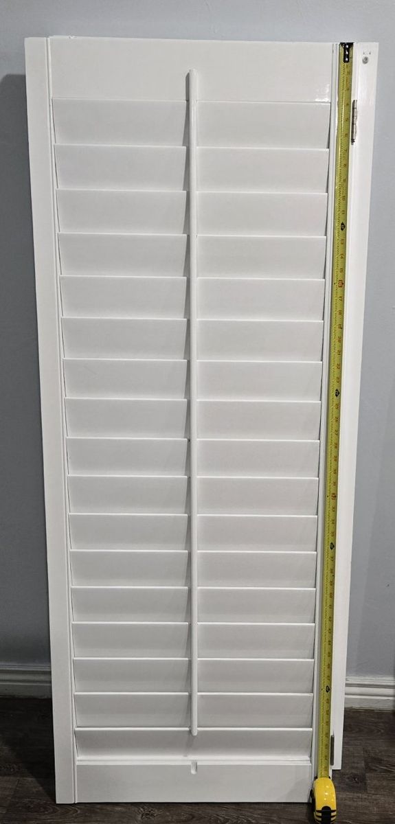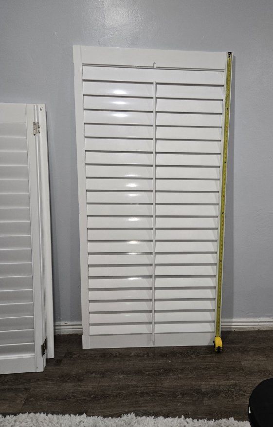 VenmoElevate your home with this professional-grade set of 5 bright white Plantation Shutters. These are constructed from high-quality, solid PVC—the gold standard for durability in Utah. Unlike wood or cheap vinyl, these are 100% waterproof, fire-resistant, and guaranteed never to warp, crack, or peel. They are perfect for any room, including high-moisture areas like kitchens, bathrooms, or sunrooms. Inventory & Measurements: All panels feature the modern 3.5-inch louvers (slats) for a clean look and excellent light control. (1) Extra-Large Panel: 71" H x 34.5" W (4) Matching Standard Panels: 58.5" H x 33" W Complete "Install-Ready" Hardware Kit: Most used shutters are missing parts, but this set is 100% complete with over $150 in professional hardware: The Shutter Fixer (SF006): Specialized heavy-duty Zinc Catches for a secure, flush closure. Narrow Utility Hinges: Matching white hinges and all mounting screws included. Pricing & Value: Custom-ordered PVC shutters are a major investment. Replacement value for this set (installed) is currently estimated at $3,150 – $3,950+. Full Set Discount: $950 (Best Value) Large Panel Only: $300 Set of 4 Matching Panels: $750 Condition: Pristine. High-Gloss Brilliant White finish. All tilt rods and slats operate perfectly. Location: Millcreek, UT. Pickup: Local pickup only due to the quality and weight of solid PVC.
