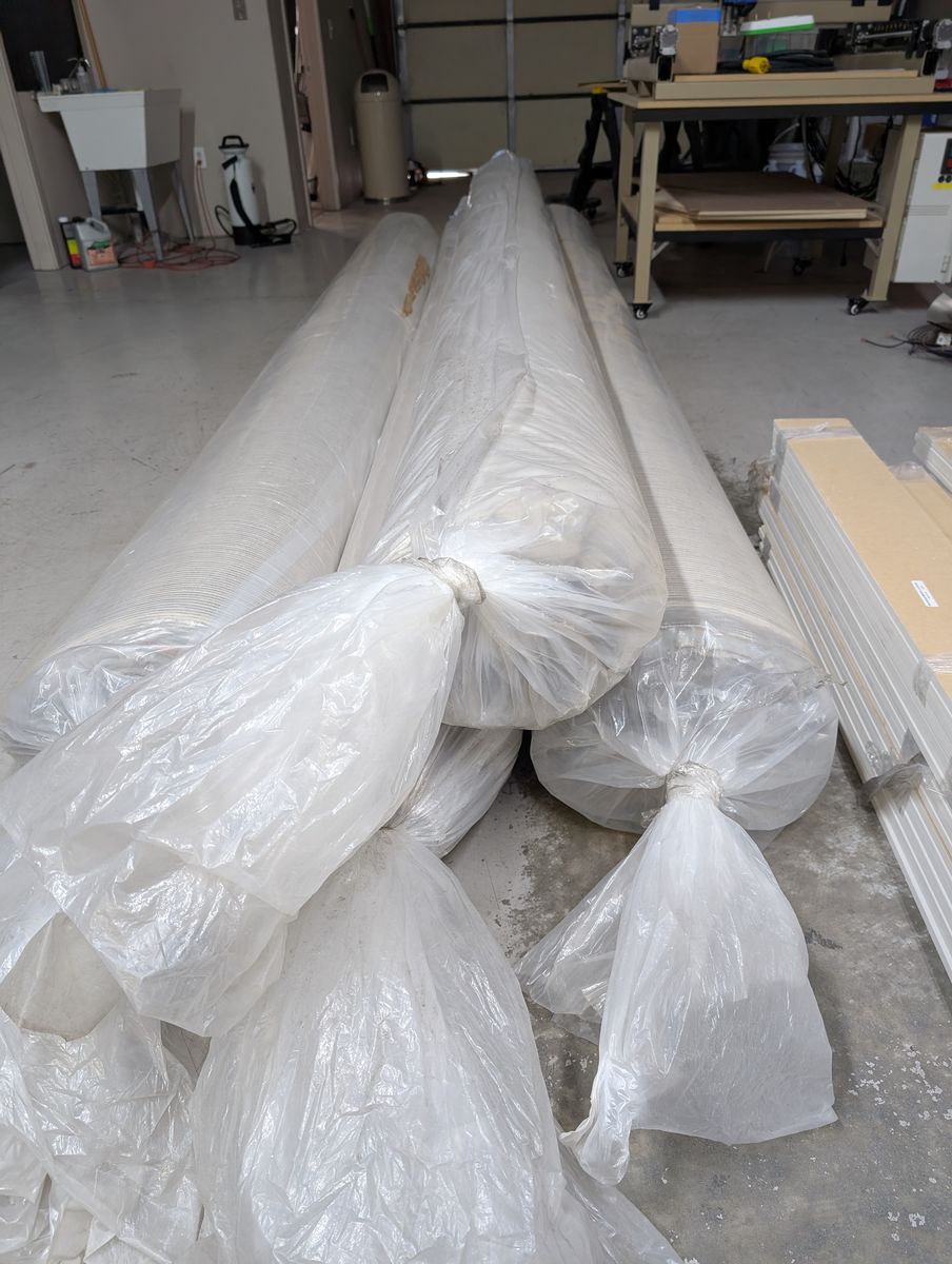 PayPalFour rolls of Revolution Mills carpets. Originally over $2.00/sqft, you pay only $0.80/sqft or just $200/roll. Each roll is a slightly different shade of beige.