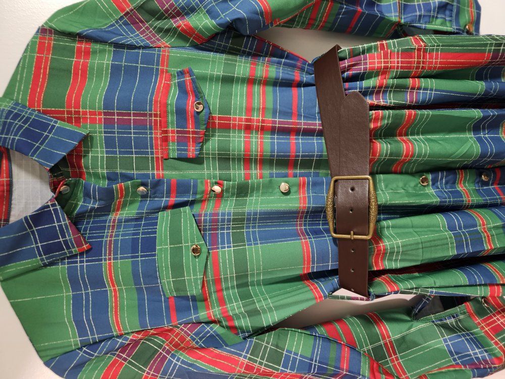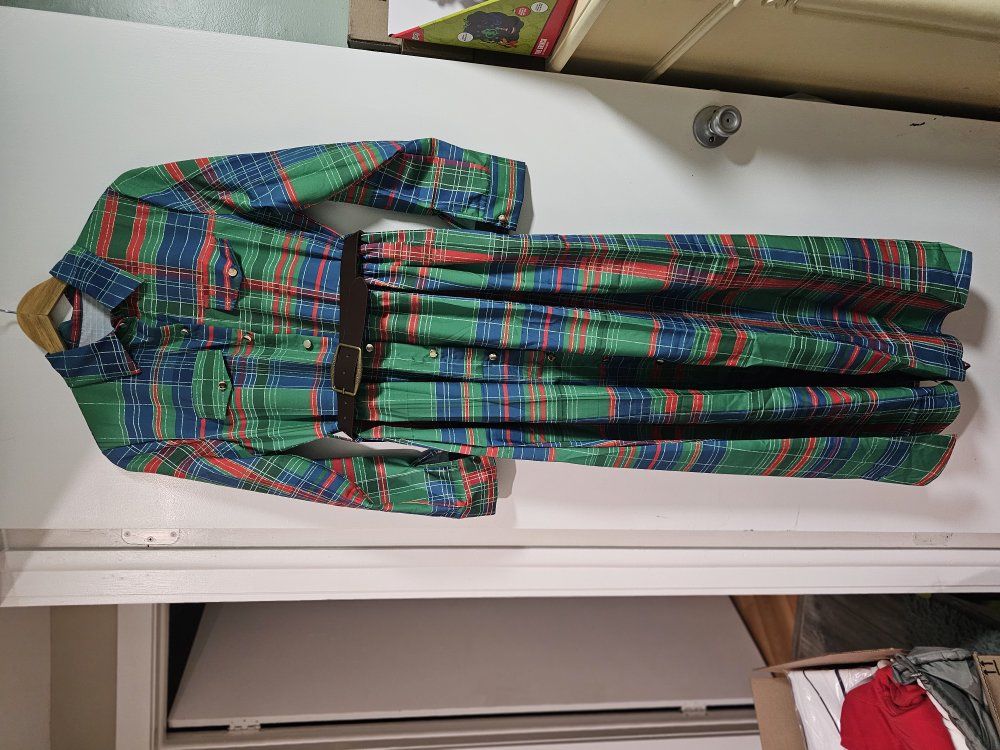Zellelight fabric plaid dress with belt size medium.