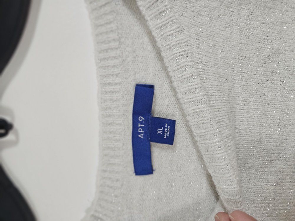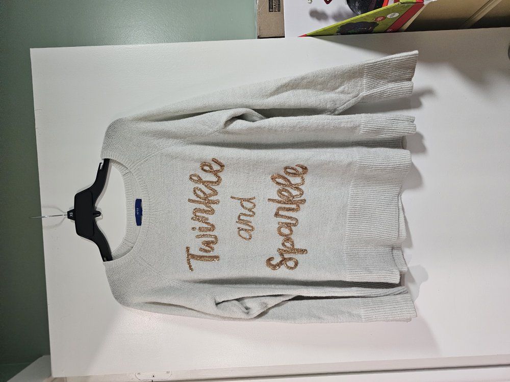 ZelleApt 9 brand sparkle white colored sweater wither copper color writing. Women's size xlarge