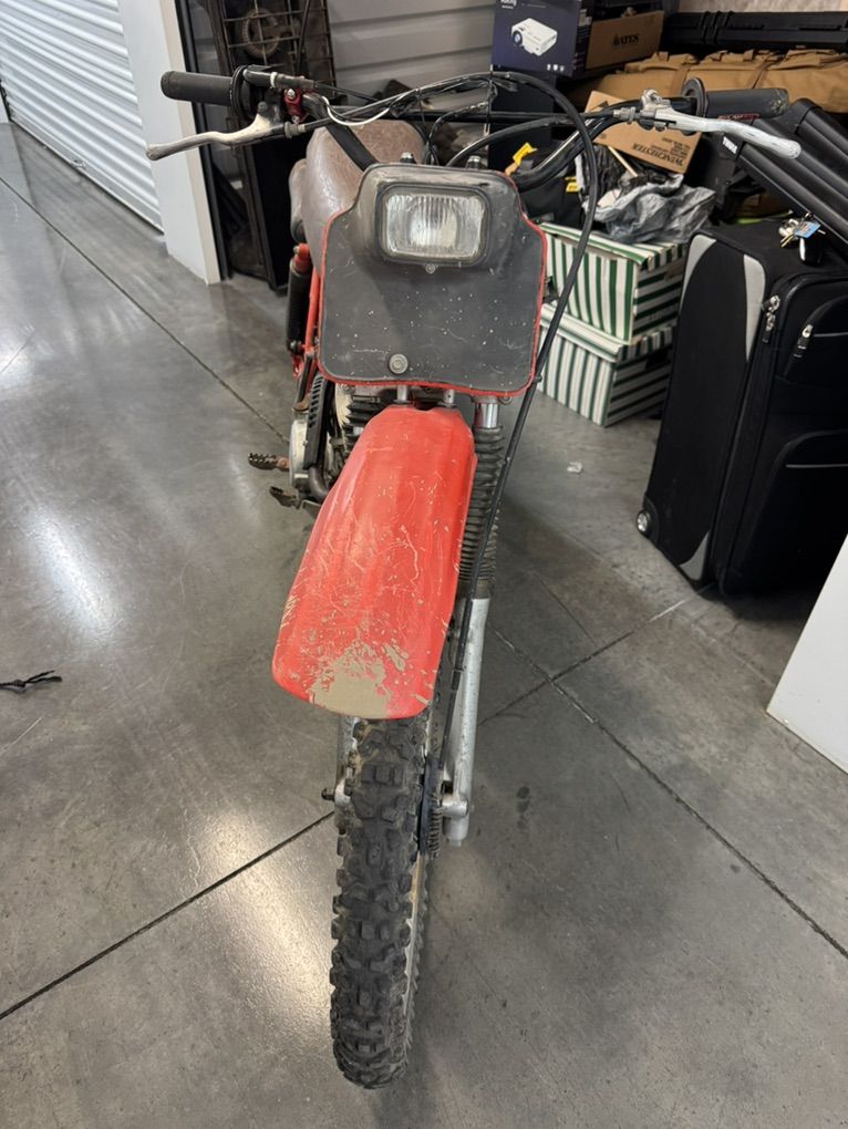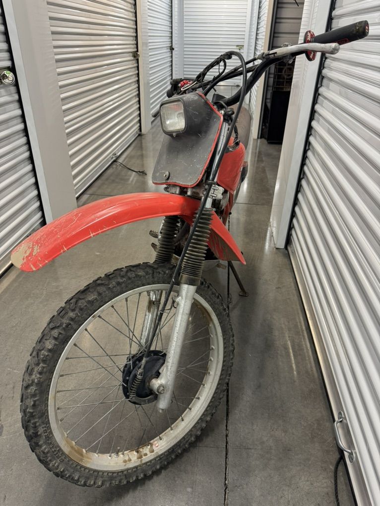 ZelleAwesome little bike that runs great. This thing will seriously outlive any of us. Shifting is very forgiving and easy. Starts quickly. Gas tank in great shape. Tires hold air, but some cracking, so may need to be replaced soon. Pretty quiet, and exhaust doesn’t shoot smoke. I got it about two years ago and replaced the carb, brakes, and grips. Also added a kill button. Comes with extra engine for parts, seat, and a bunch of random extra parts. I also have a black widow trailer hitch motorcycle carrier that I’ll throw in for $100. It’s brand new and never used.