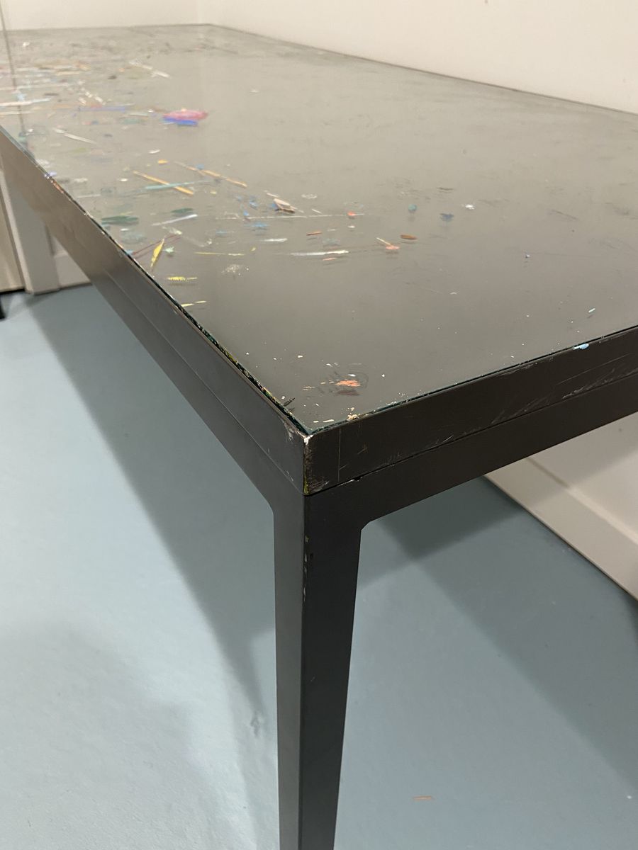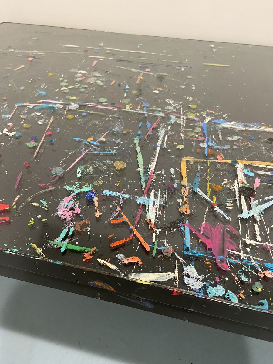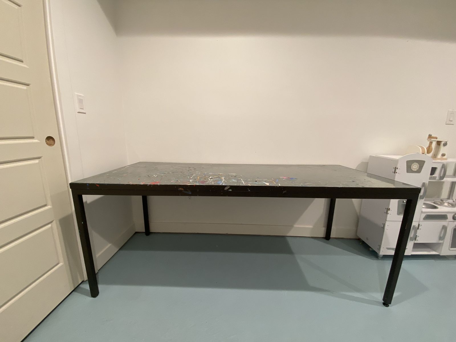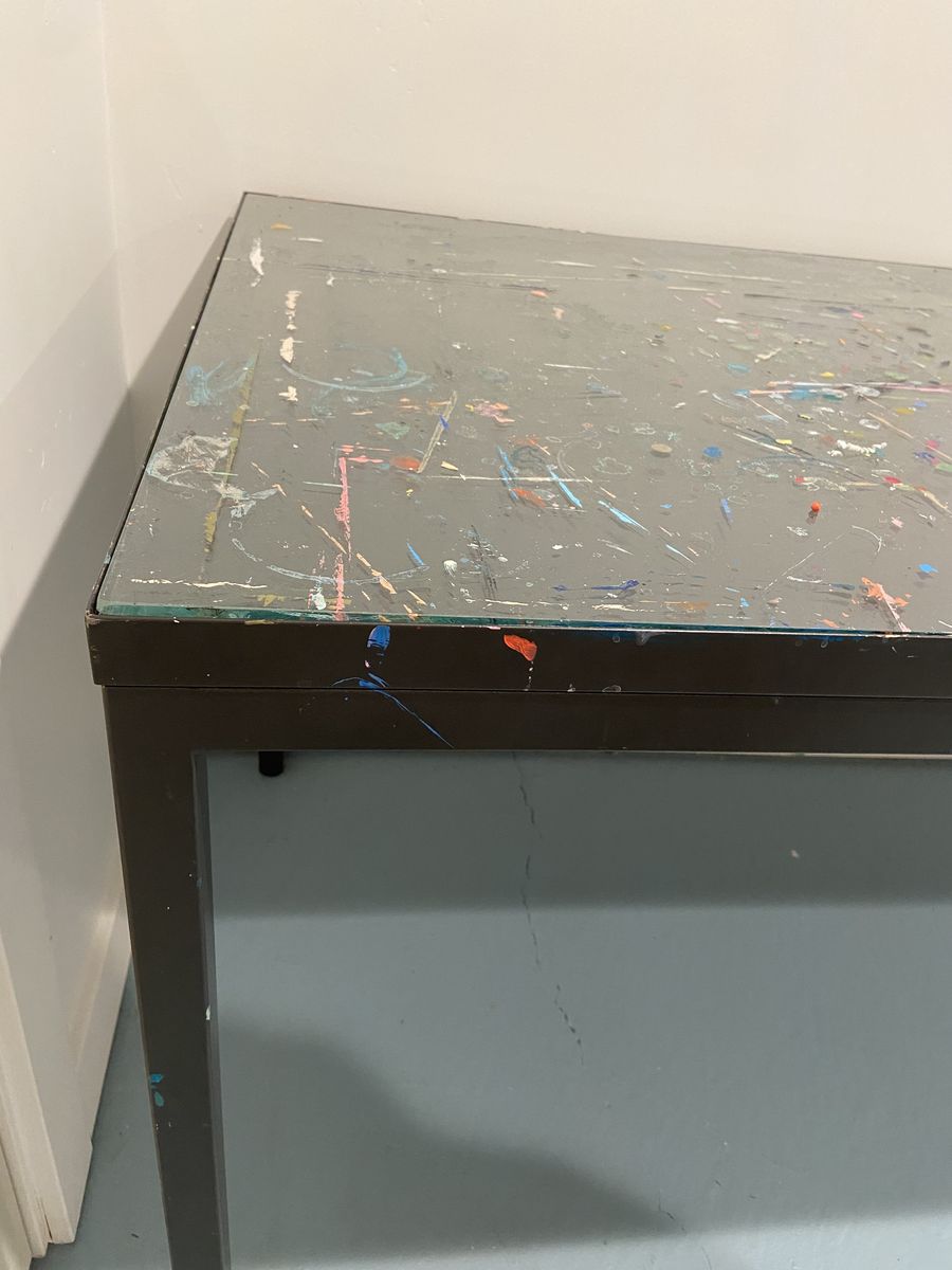VenmoI’ve used this table for 8 years in my art studio. Downsizing and don’t want to take the time to clean it off, although the acrylic paint comes up with a razor with a little elbow grease. I’ve cleaned it off many times over the years.