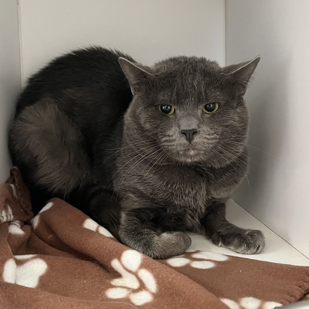 Poseidon is a handsome grey domestic shorthair with a calm and gentle presence. Bashful and a bit reserved, he prefers to take in his surroundings quietly, but he’s very well socialized and comfortable around people. Poseidon is always happy to accept pets and enjoys the simple things—soft attention, cozy spots, and peaceful company. A sweet and easygoing companion, he brings a quiet kind of warmth wherever he goes. If you are interested, reach out to adoptions@bestfriends.org for more information.