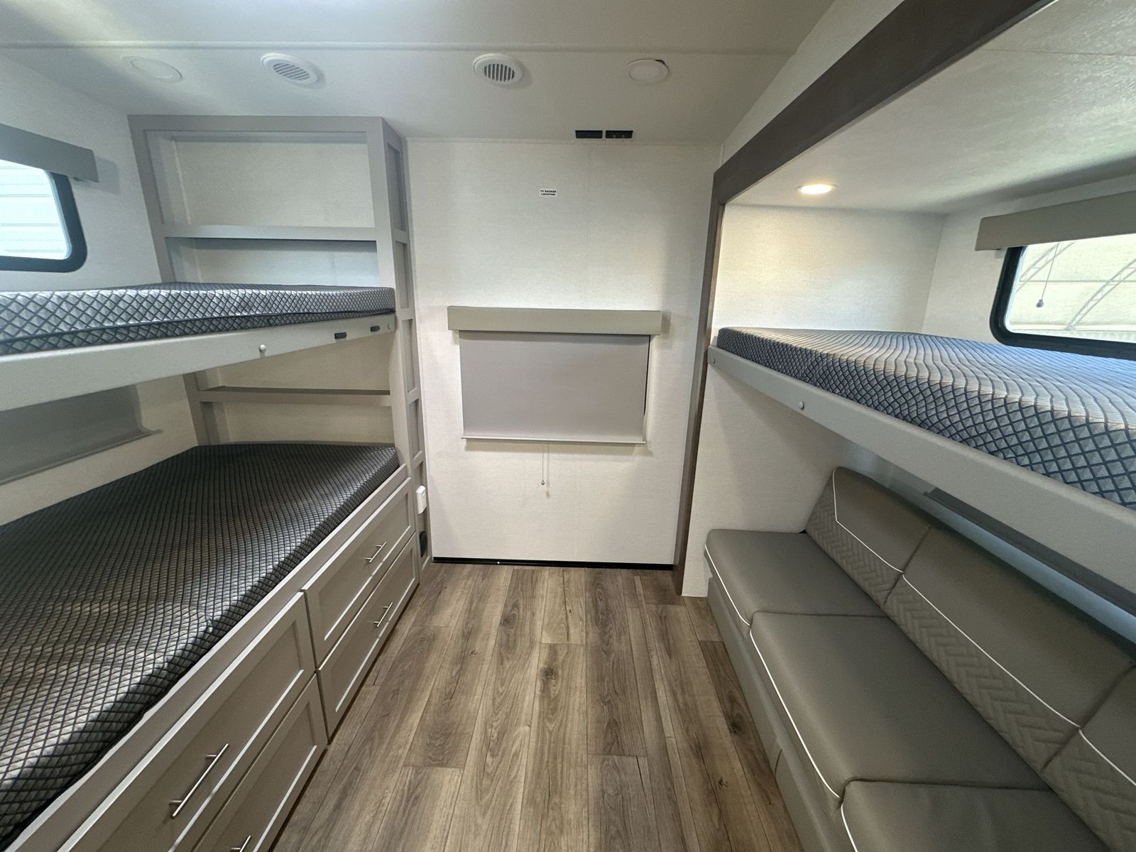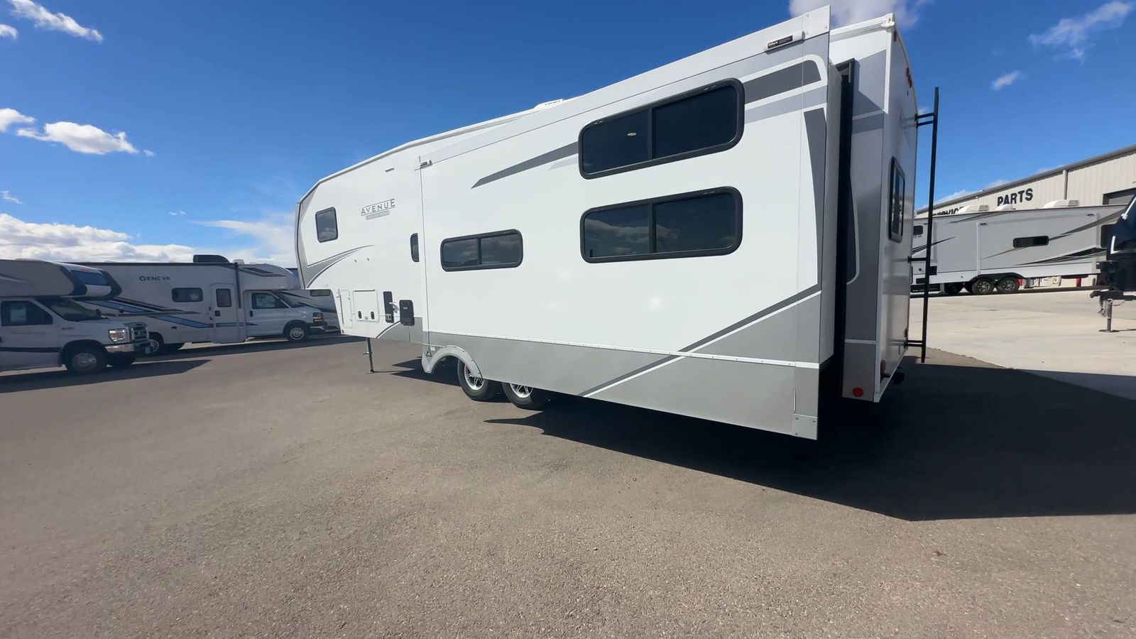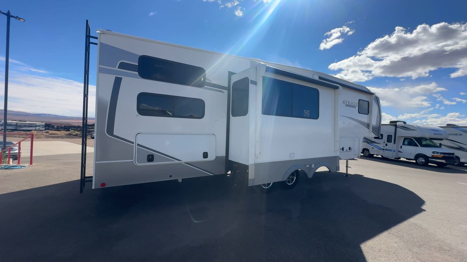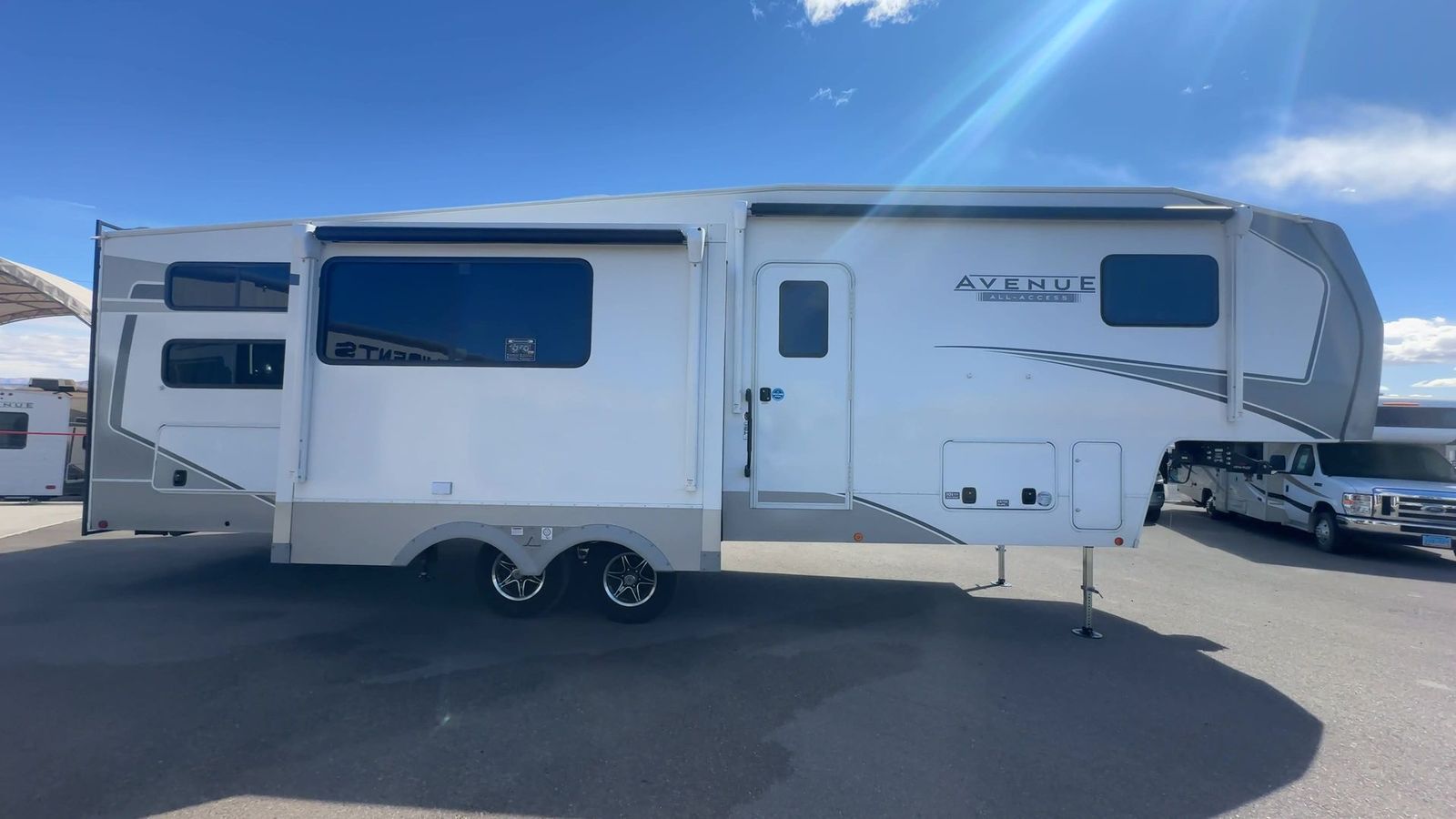 Alliance RV Avenue All-Access fifth wheel 30BH highlights: Rear Bunkhouse U-Shaped Kitchen Queen Bed Two Awnings If you've been searching for a fifth wheel with more sleeping space, this is the one! You will find a queen bed in the front private bedroom, along with a wardrobe with washer and dryer prep and overhead storage for your things. Your guests can take the rear bunkhouse that includes 40" x 72" bunks across from a slide out with a flip-up bunk and cube sofa below. Everyone can meet in the middle living area and kitchen to relax on the sofa that is in direct view of the 50" Class HDTV. There is also a booth dinette table here to dine together. If the weather is nice, you may just find yourselves outdoors since there are two awnings and an exterior griddle! A benchmark chassis creates a space saver upper deck with each one of these Avenue All-Access fifth wheels by Alliance RV! The 101 in. wide-body construction gives you more room to walk around and the flush slide out floors throughout prevent any tripping. There arecomposite sidewalls inside and out, and a seamless fully walkable PVC roof for extreme durability and zero maintenance. You are sure to love no carpet throughout making each Avenue All-Access easy to clean and allergen free, not to mention pet friendly. You can maximize your space throughout with innovative storage solutions like the hidden storage behind the TV, inside the end tables, ottoman, and dinette chairs. These units also include the OTG Solar Package with a 200 watt solar panel, 15 amp MPPT charger, multiple outlets, and more to keep you powered up!