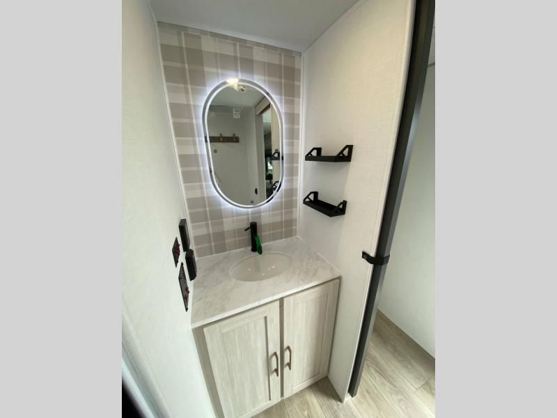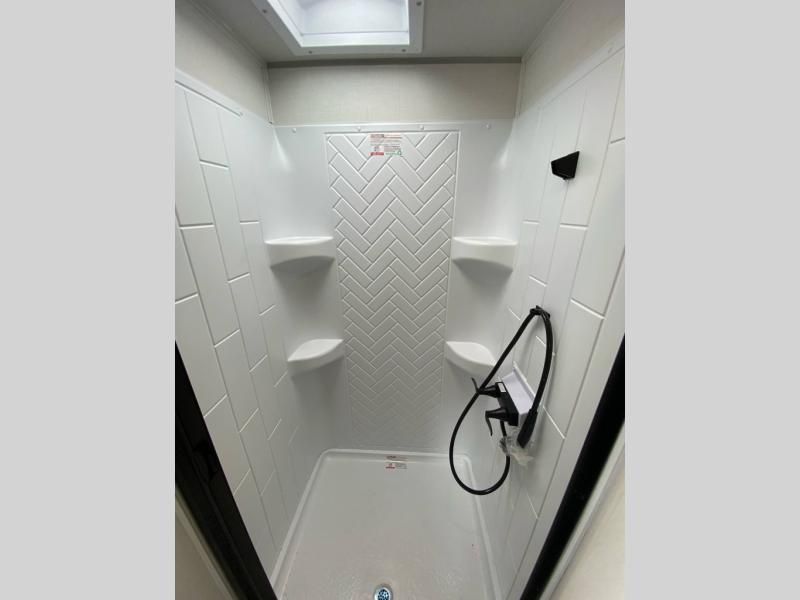 With any Grand Surveyor travel trailer by Forest River you will enjoy turn-key ready-to-go features and quality construction! Each model includes Azdel composite walls and a gel coated fiberglass front cap with an automotive style tinted windshield for a sleek look. There are friction hinge black glass entry door(s), an adjustable platform step with a night light, plus Goodyear tires and a power tongue jack for easy towing. The interior will have you feeling right at home with roller shades**,** residential faucets, sinks, and bathroom vanity, plus Surf(x) seamless countertops throughout. You can also plan for adventure with a 2" rear accessory and exterior spray port, and there are slam latch e****xterior baggage doors throughout to keep all your gear secure. Other stand-out features include a central vacuum system, a 200 watt solar panel with a 30 amp controller, a tankless water heater, carpet-free interiors, and the list goes on!