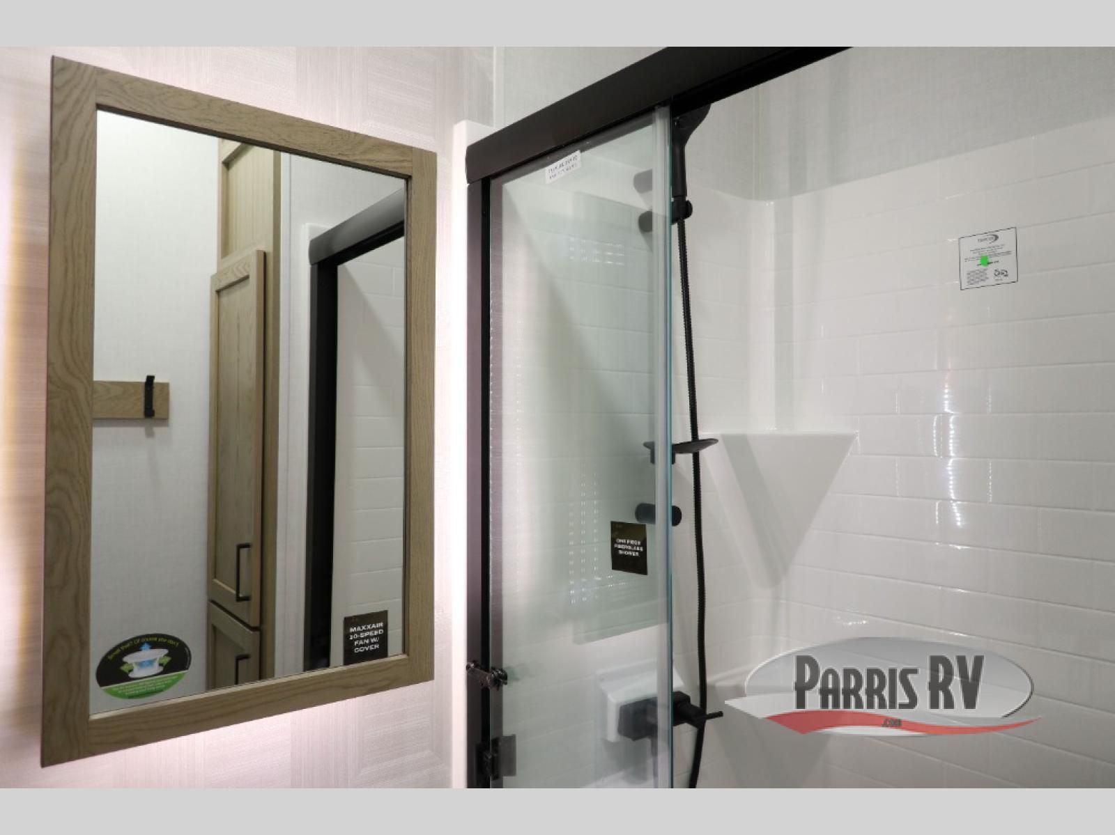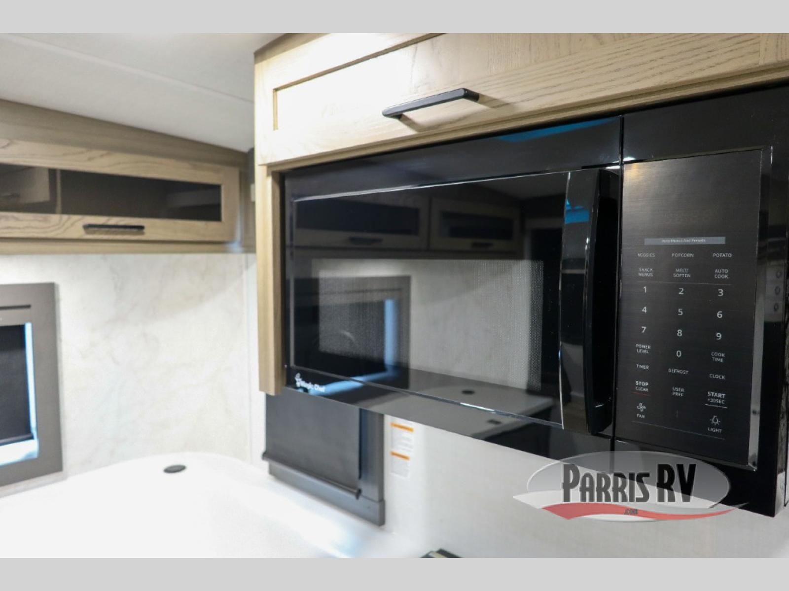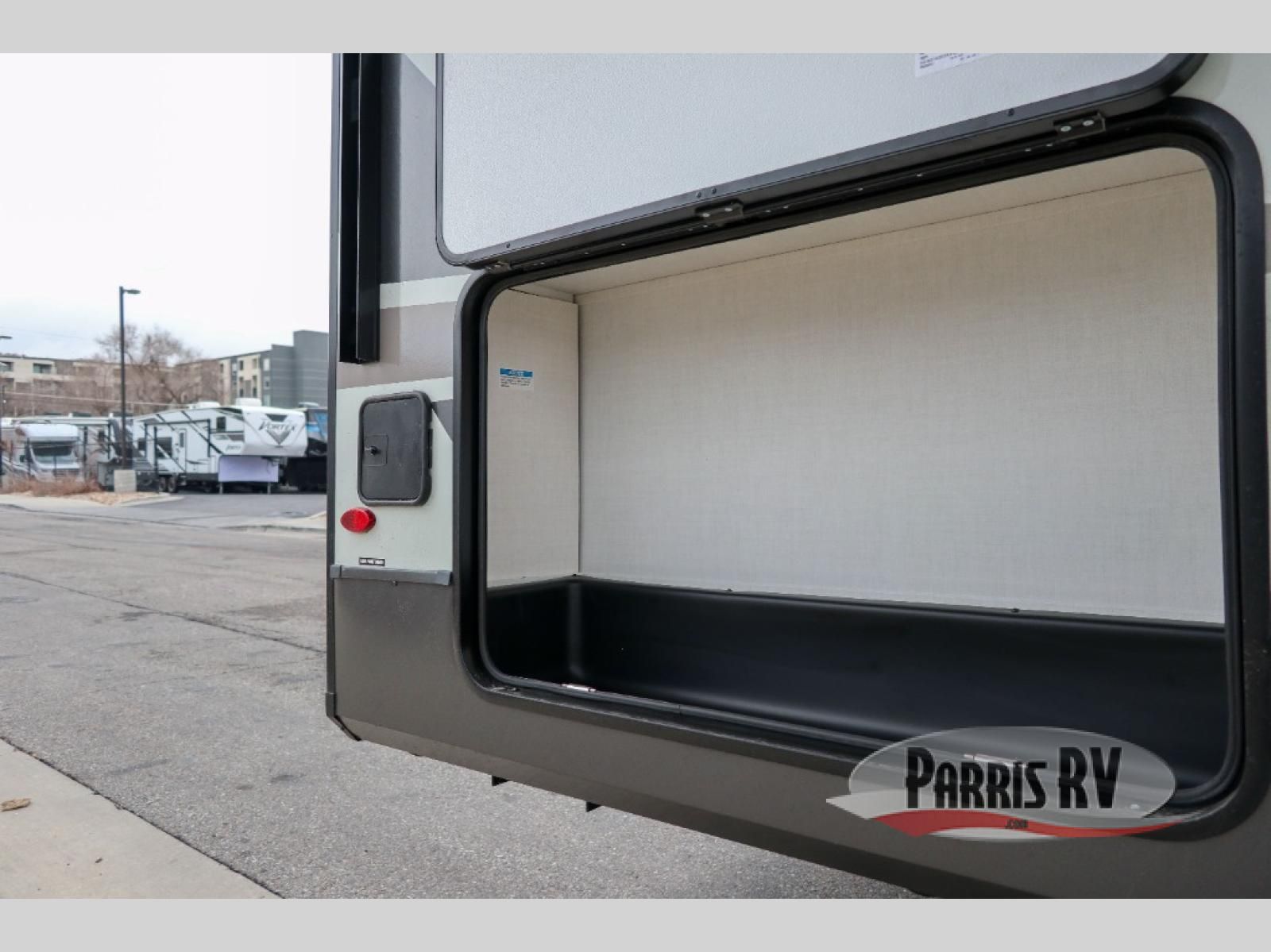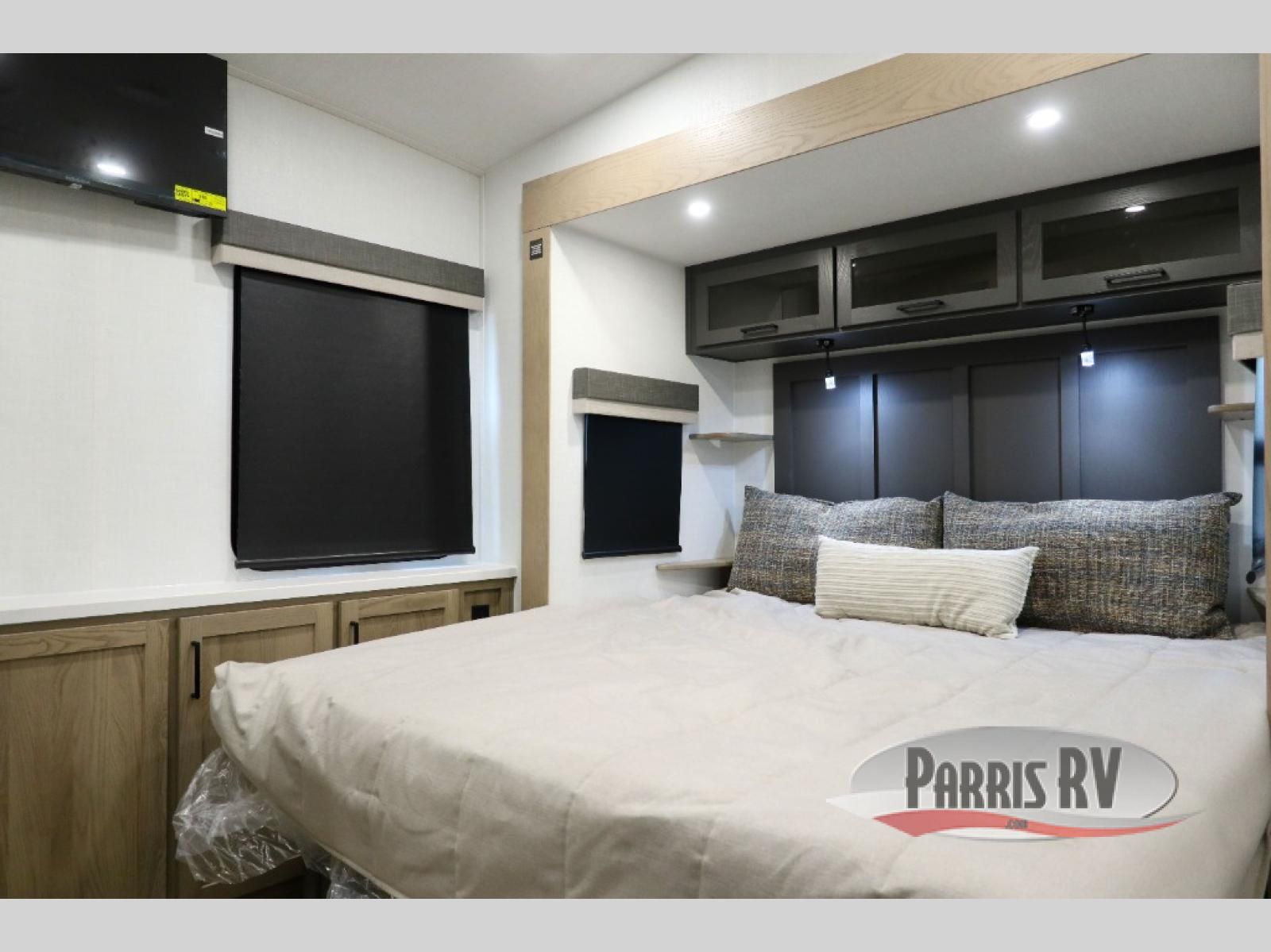Premium amenities and a serene atmosphere make this fifth wheel your home away from home. The rear bedroom is a peaceful retreat, featuring a queen bed, spacious wardrobe, and a washer and dryer prep for added convenience. The full bathroom is a spa-like oasis, complete with a linen closet to keep your towels and toiletries organized. The theater seat is the perfect spot to relax and unwind, while the table & chairs with a leaf provide a comfortable space for meals and conversation. The televator TV is a sleek and modern touch, perfect for enjoying your favorite shows or movies. The pantry serves as a convenient storage space for your food and cooking essentials, while the fridge, microwave, and overhead cabinets provide ample space for meal preparation. The front countertop is the perfect spot to whip up a quick snack or breakfast.