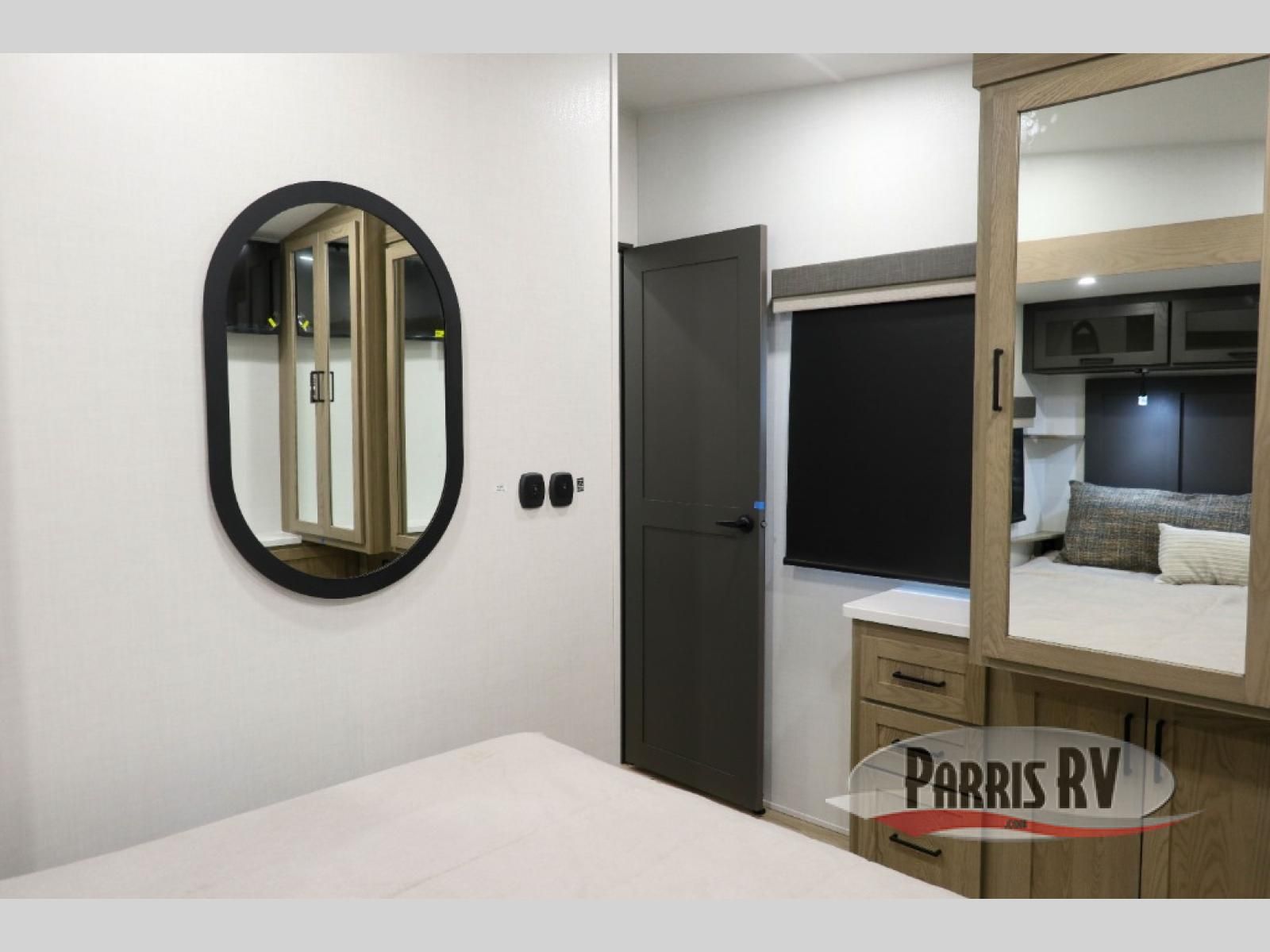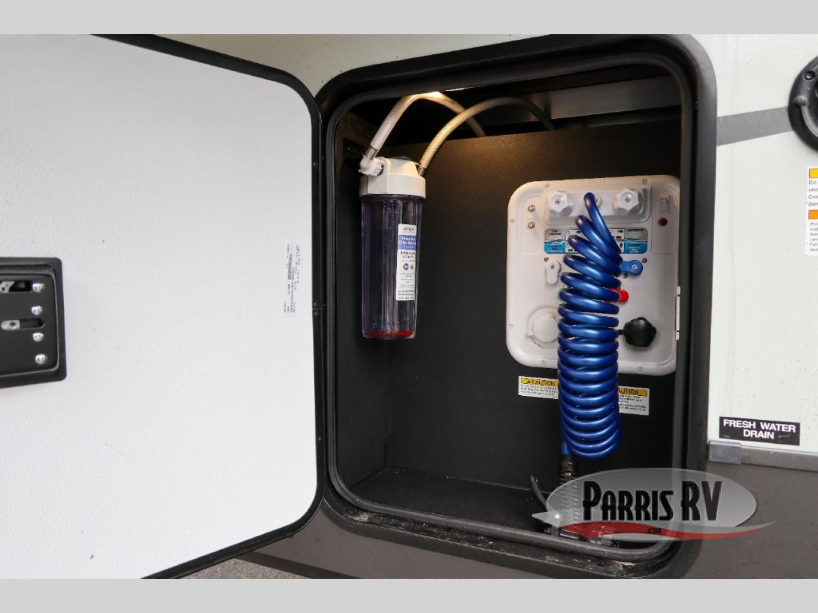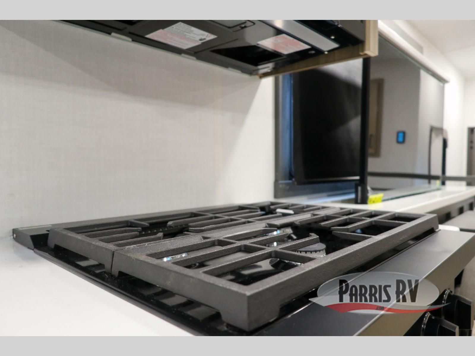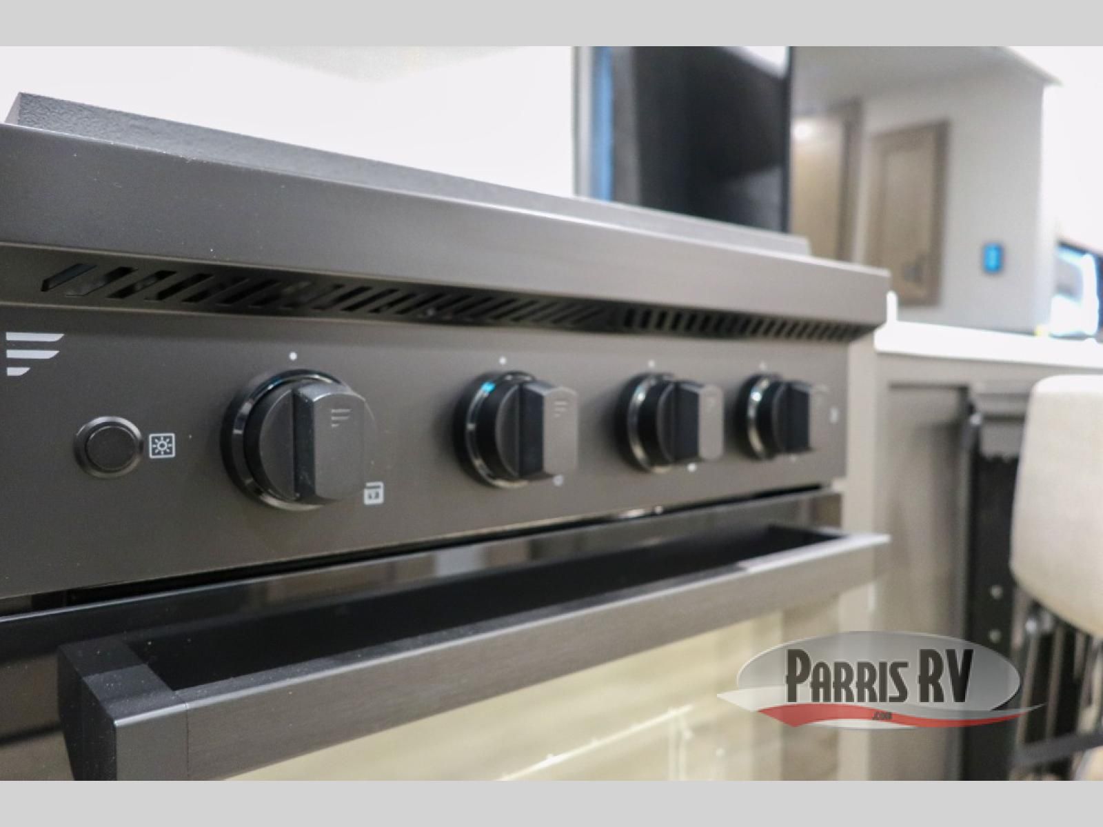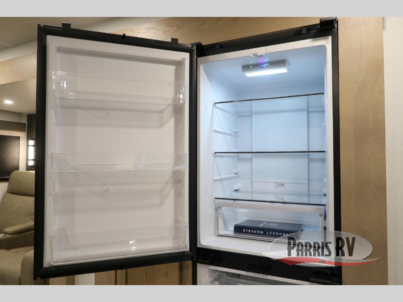 Premium amenities and a serene atmosphere make this fifth wheel your home away from home. The rear bedroom is a peaceful retreat, featuring a queen bed, spacious wardrobe, and a washer and dryer prep for added convenience. The full bathroom is a spa-like oasis, complete with a linen closet to keep your towels and toiletries organized. The theater seat is the perfect spot to relax and unwind, while the table & chairs with a leaf provide a comfortable space for meals and conversation. The televator TV is a sleek and modern touch, perfect for enjoying your favorite shows or movies. The pantry serves as a convenient storage space for your food and cooking essentials, while the fridge, microwave, and overhead cabinets provide ample space for meal preparation. The front countertop is the perfect spot to whip up a quick snack or breakfast.