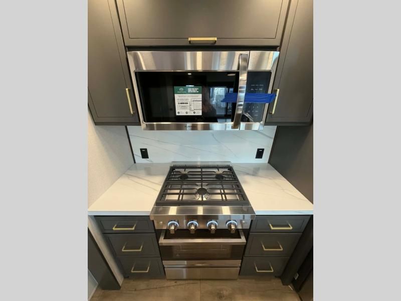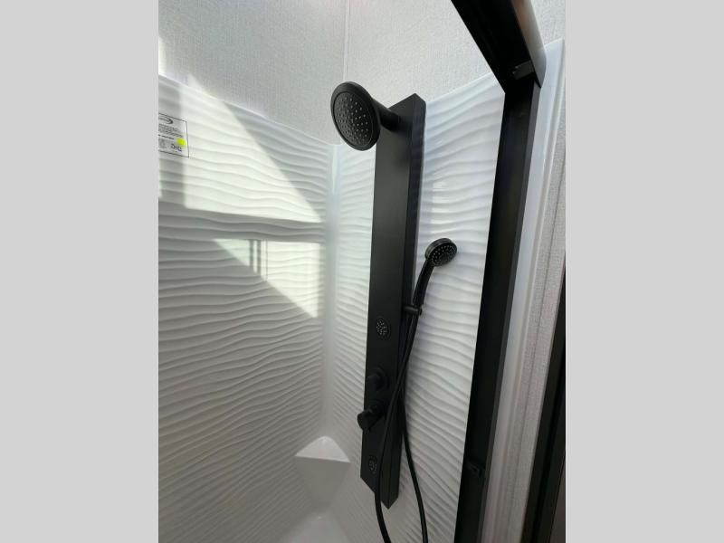 Hop on new adventures with these Forest River Cedar Creek Cottage Fifth Wheels! Each destination fifth wheel features a 101" wide body frame that provides a sturdy foundation for your adventures, while the AlphaPly TPO roof membrane offers superior durability and weather resistance. Plus, the 3M Bonded Sidewalls add an extra layer of protection and strength, and the hydraulic front jacks make setting up camp a breeze. In the luxurious interiors, the vinyl floor covering is easy to clean, and the Vixeinite flush floor slides in the kitchen and living area provide a seamless transition between the floor and the slide-outs. In addition, the 52" ceiling fan in the living room circulates air and adds to the spacious feel, and the kitchen island is a standout feature, boasting a solid surface counter, a flush-mount sink, and a stainless-steel design. You'll feel like you're cooking at home! Finally, the USB ports in the bathroom ensure you can keep your devices charged and within reach, even in the most convenient places.