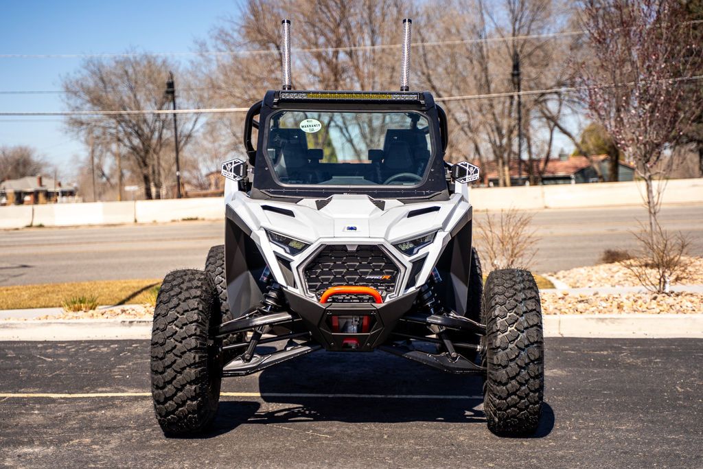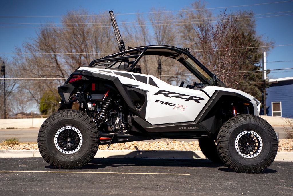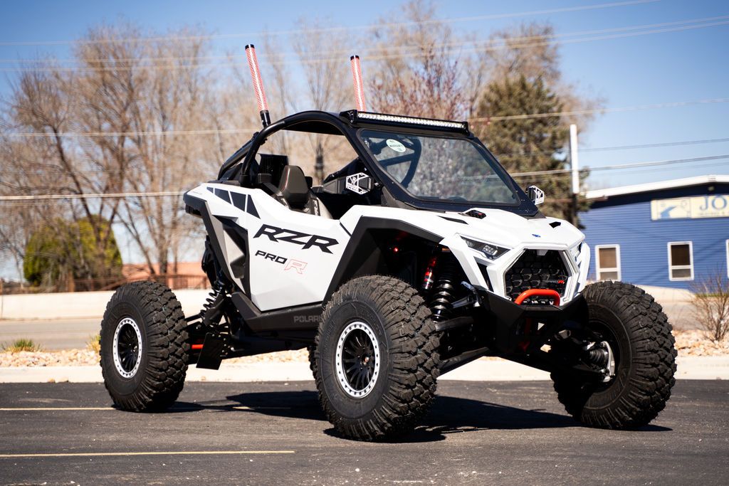 INCLUDES: STREET LEGAL KIT, ROCK LIGHTS, 35" TIRES, SIDE MIRRORS, RIGID LIGHT BAR, FRONT WINDSHIELD, ZRP REAR RADIUS RODS, MB LIGHTED WHIPS. 2026 Polaris® RZR Pro R Ultimate CHAMPION OF THE DESERT. Features may include: PERFORMANCE Keep Up With The Pros: Champion challenging terrain with RZR Pro R’s race-proven driveline components. Together, they seamlessly deliver 225 HP of pure power, propelling you to outperform the ordinary off road. Unleash Heart-Pounding Power: Fuel your adrenaline with pure power. ProStar Fury 2.0 naturally aspirated 4-cylinder engine unleashes relentless power to push your limits on intense terrain. Less Down Time, More Thrills: A strong belt and oversized clutch handle high torque environments like deserts and dunes with ease – reducing wear and unleashing maximum performance. If this beast can endure the brutal Baja 1000 and the DAKAR Rally, it will dominate your weekend rides. Control To Conquer It All: With a 74" stance for maximum stability, MaxLink suspensions with 29" of usable travel that devours whoops, and a rear toe link to keep the machine grounded and tracking, RZR Pro R delivers total control to conquer it all. DESIGN See And Be Seen: Stand out from the pack with the return of RZR Fang Lighting. Its sharp design and dynamic up-and-down animation command attention and exude a fierce attitude – ensuring you’ll steal the show. Keep The Elements Out: New solid half doors feature a double latch and door seal to repel more dust, water and other elements nature throws your way. Stay comfortable, more focused, and unstoppable on the trail. Stay Cooler In The Cab: Turn up the heat on the trail, stay cooler for the ride with all new dual hood scoops that vent fresh air into the cab. Working together with the cab’s radiator deflectors, they more effectively manage airflow – reducing overall cabin temperature. Pro Climate Heated & Vented Seats: Confidently take on challenging terrain with seats that keep you anchored and comfortable through sudden stops, sharp turns, and long days. Seat heating and venting offers more comfort on hot or cool days. TECHNOLOGY Industry-Leading Display: Optimized driver touchpoints bring vehicle controls to your fingertips with a more intuitive, accessible design on the new Gen 2, 10” display, powered by RIDE COMMAND. Easily map routes, switch tunes and more, without taking your focus from the ride. Experience Powerful Sound: Rock out on your ride. Factory-installed Rockford Fosgate® Audio Stage 4 Audio delivers powerful, clear sound that makes you feel like you’re right in the action. Nonstop Thrills, Next-Level Control: Dial in your preferred level of exhilaration on the go with DYNAMIX semi-active suspension. It automatically adjusts shocks to the terrain as you ride, delivering nonstop thrills and next-level control.