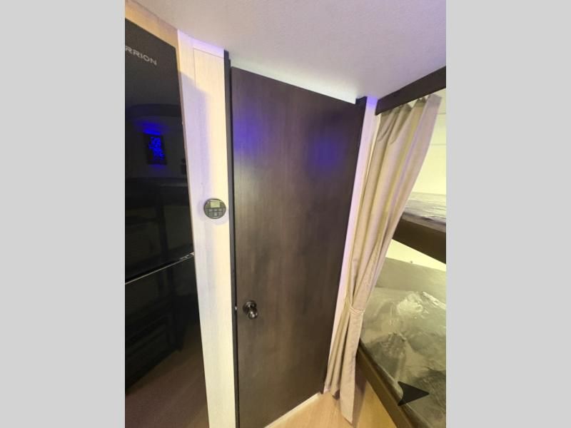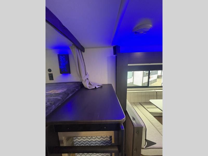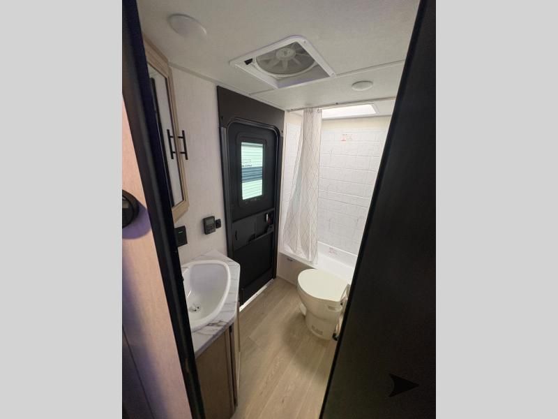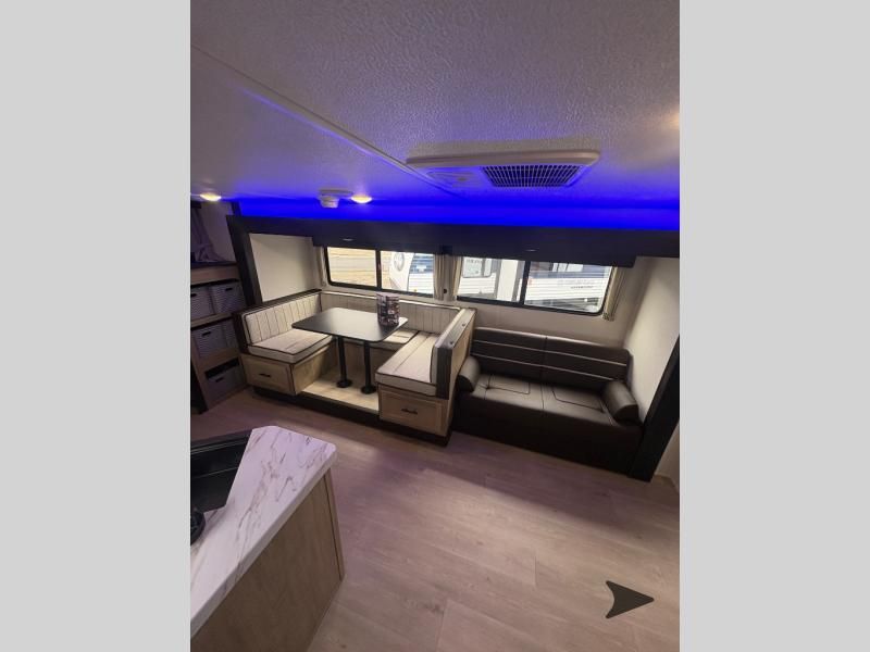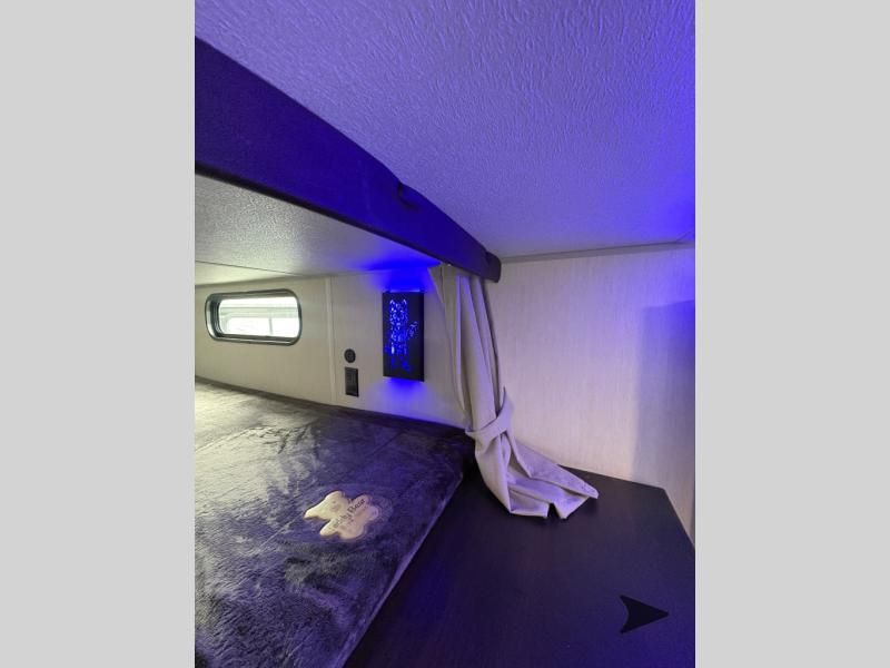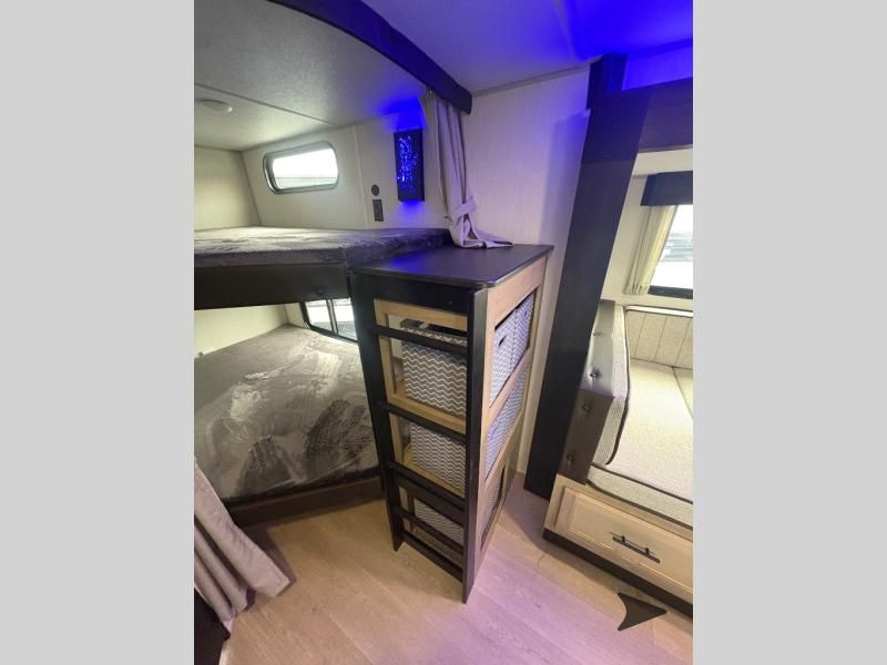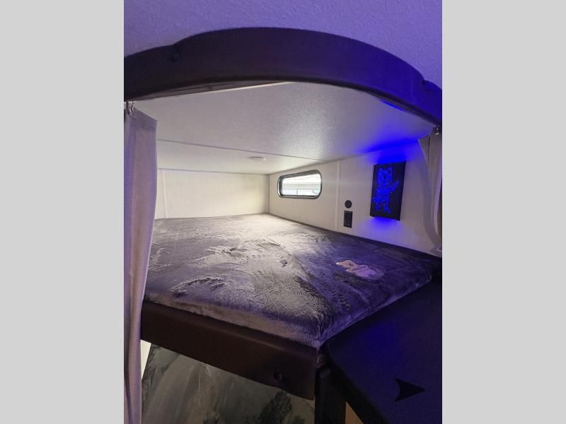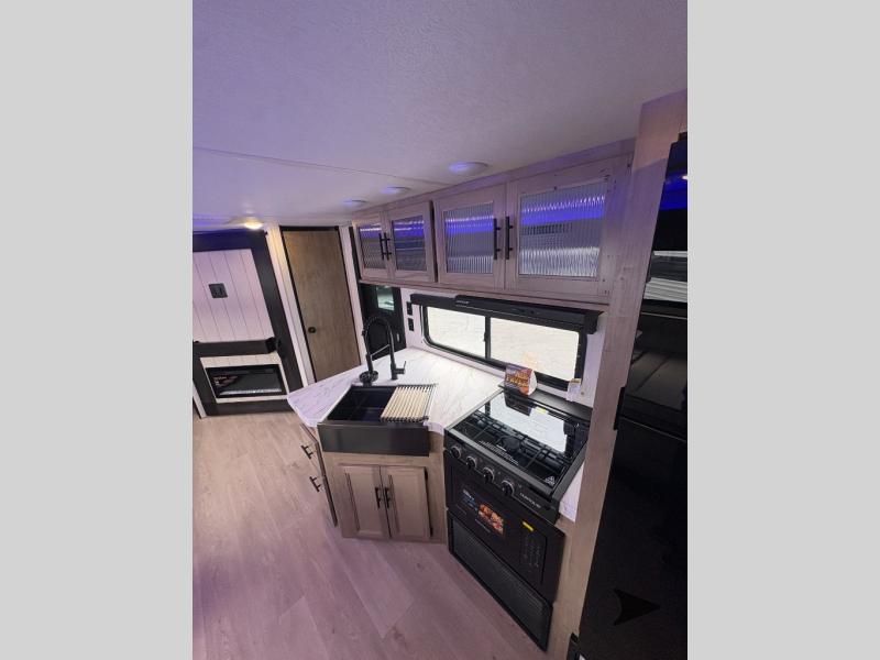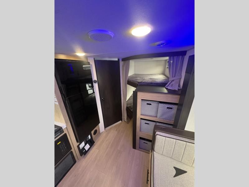 Forest River Cherokee Grey Wolf travel trailer 26KF highlights: Double-Size Bunks Dual Entry Doors RV King Bed Outdoor Kitchen Outside Storage If you've been searching for a travel trailer with a larger sleeping capacity to camp with friends, this is the one! There are double-size bunks in the rear corner, and the full bath with its own exterior entry door is in the other rear corner for easy nighttime use. Up front, an RV king bed in the private bedroom is sure to bring a great night's rest, and you'll find a bedside wardrobe to keep your clothes picked up off of the floor. In the morning, everyone can meet in the main living room that includes a large slide out, U-shaped dinette, sofa, and a fireplace with a hidden pantry behind it for smart storage solutions. An outside kitchen will allow you to get some fresh air as you make dinner, but there's also a full interior kitchen if the weather isn't cooperating. Additional outdoor features include a rear storage rack, an outside TV mount, and a 15' awning for some shade! The Cherokee Grey Wolf by Forest River feature distinctive features, at-home comforts, and durable construction materials so you can enjoy your RV for years to come, plus they are outstandingly affordable! You can choose between travel trailers, toy haulers, and even fish houses, depending on the camping style you prefer. You'll find many convenient amenities both inside and outside, along with comfortable seating and sleeping spaces, and plenty of storage for your personal belongings and camp gear!