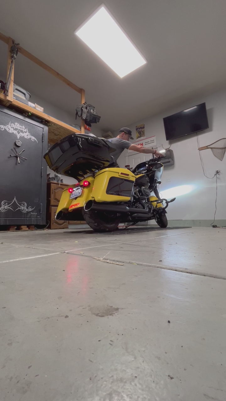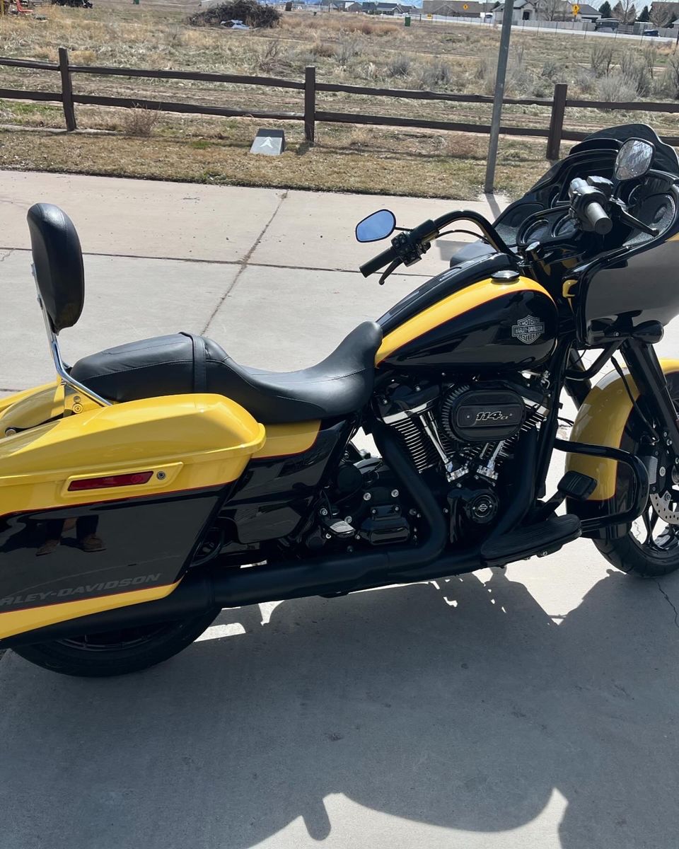 Official Harley tour pack Harley Digital antenna Passenger floor boards Highway pegs Operator adjustable backrest Krome works head back full exhaust Separate luggage rack and sissy bar included also Cover