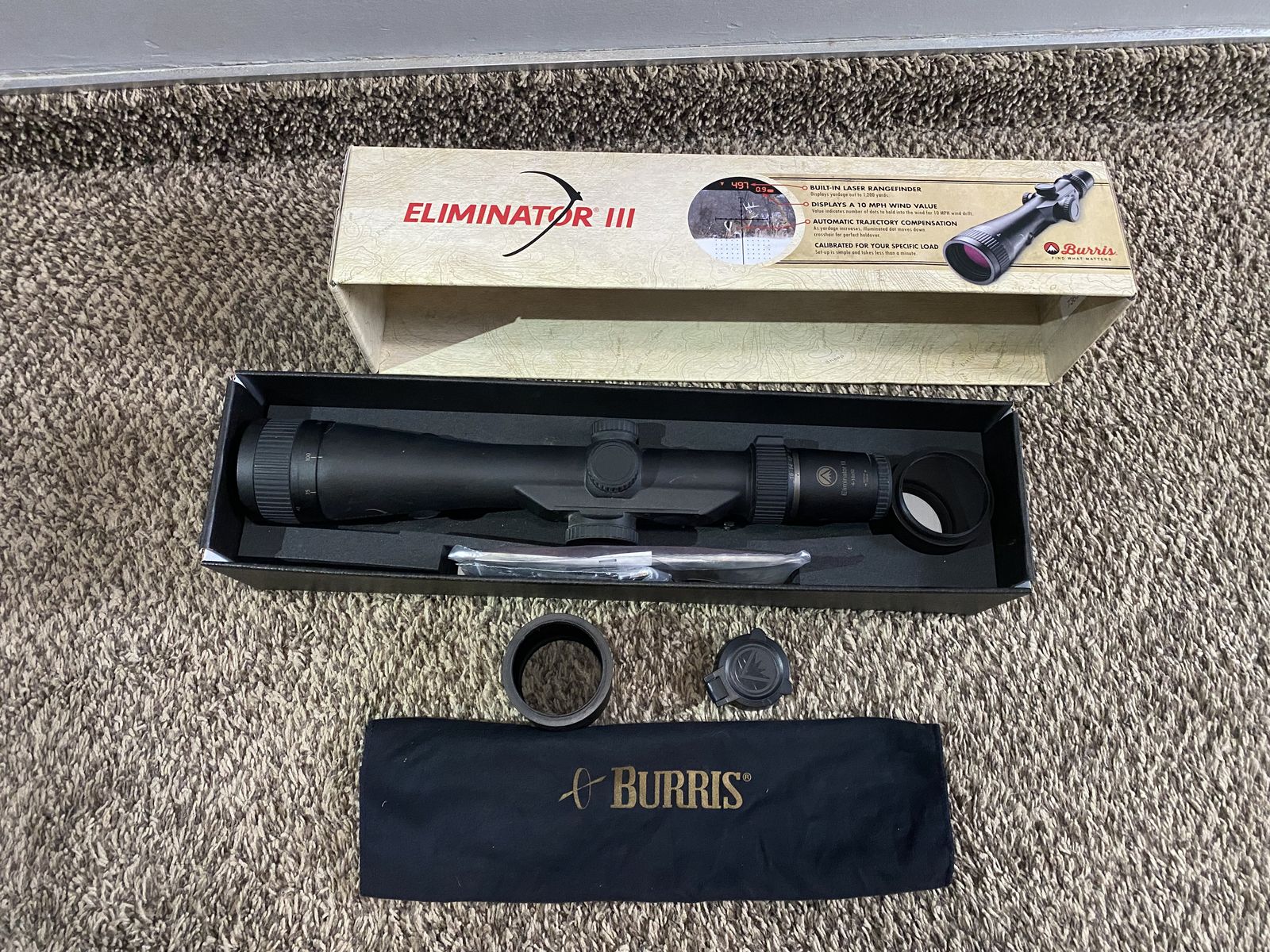 VenmoBurris Eliminator III Hunting scope. Works perfectly no issues. Venmo or Cash Only. I don't get the messages from KSL all the time $900 Venmo or Cash Only