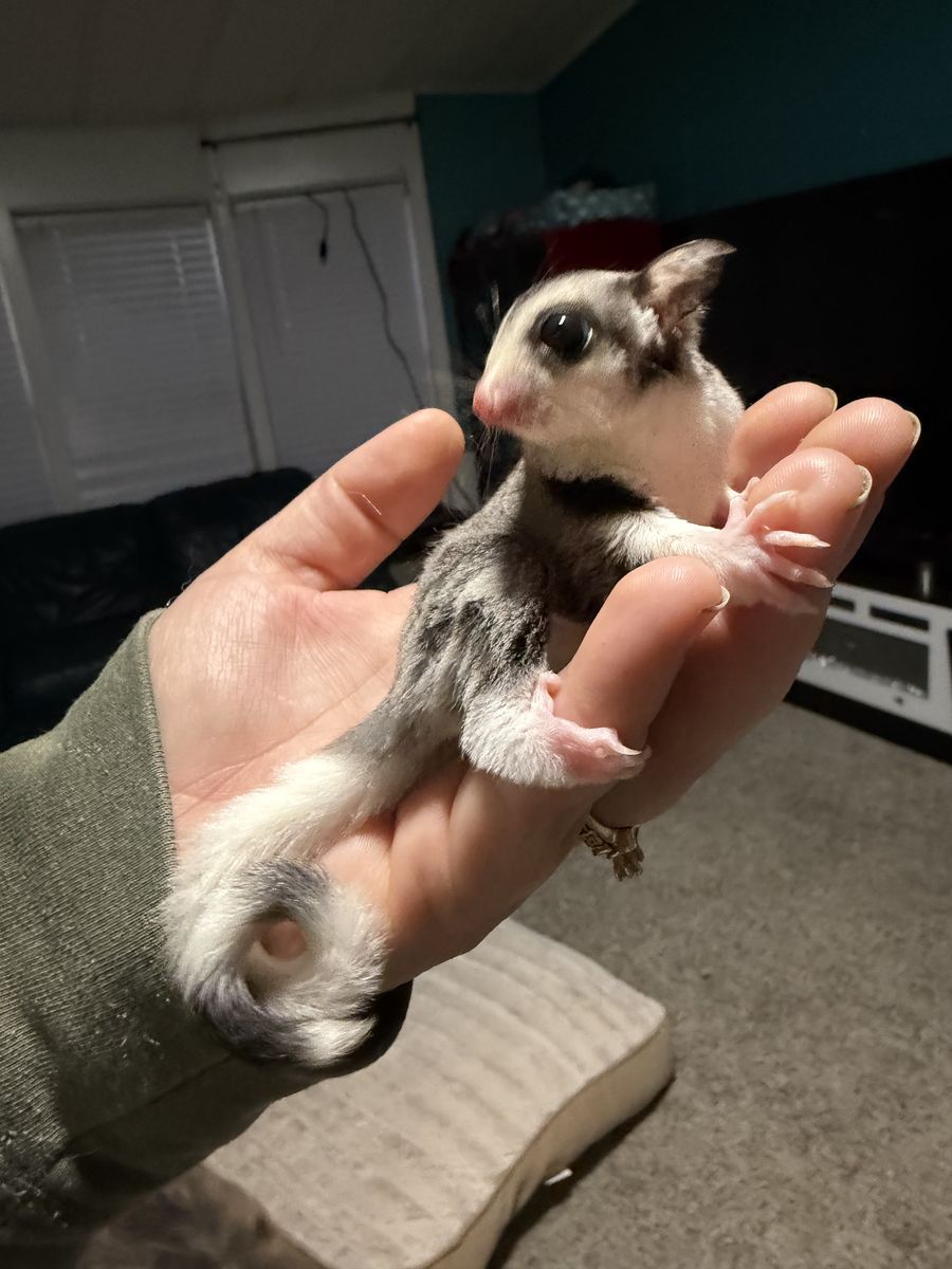 ZelleThis little boy is a mosaic and super super sweet. We hold him daily to ensure he’s a great handleable pet! He is on the BML diet and gets fresh fruits and veggies daily. He is 4 weeks oop. If you want to make him part of your family you may place a deposit until he’s ready to go in 4-6 more weeks.