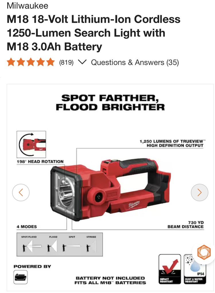 New Milwaukee M18 Work/Search Light With 3.0 Battery included
