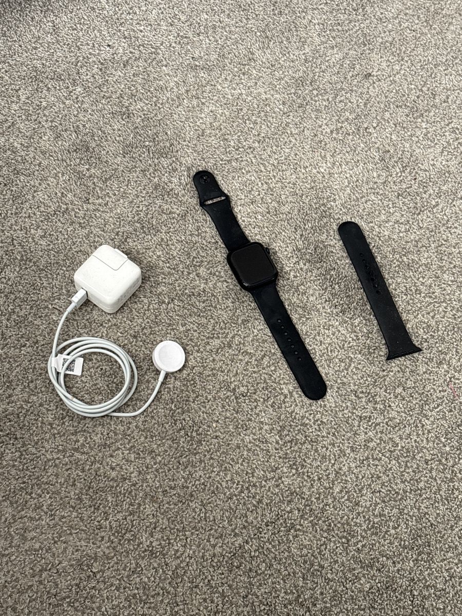 VenmoApple Watch Series 7 Wifi+Cellular Used, has some scratches. No cracks Decent battery Comes with charger, brick, and apple rubber strap with two sizes.