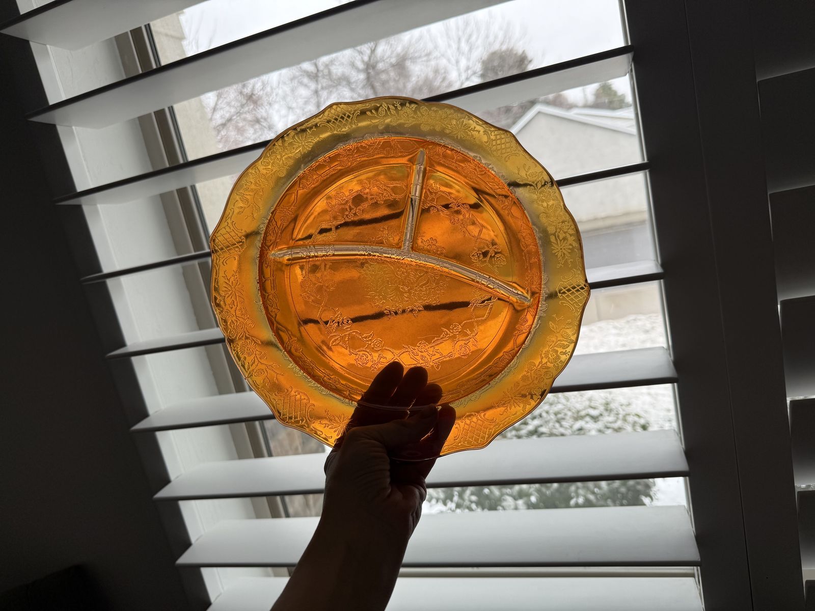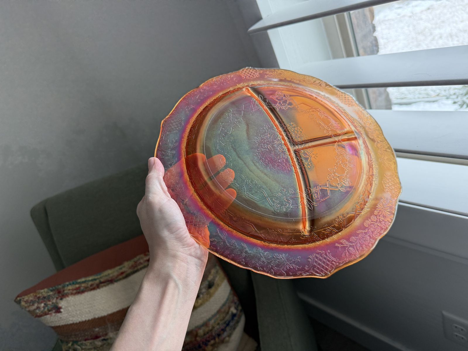 ApplePay• Vintage Jeannette Glass Company carnival glass plates\