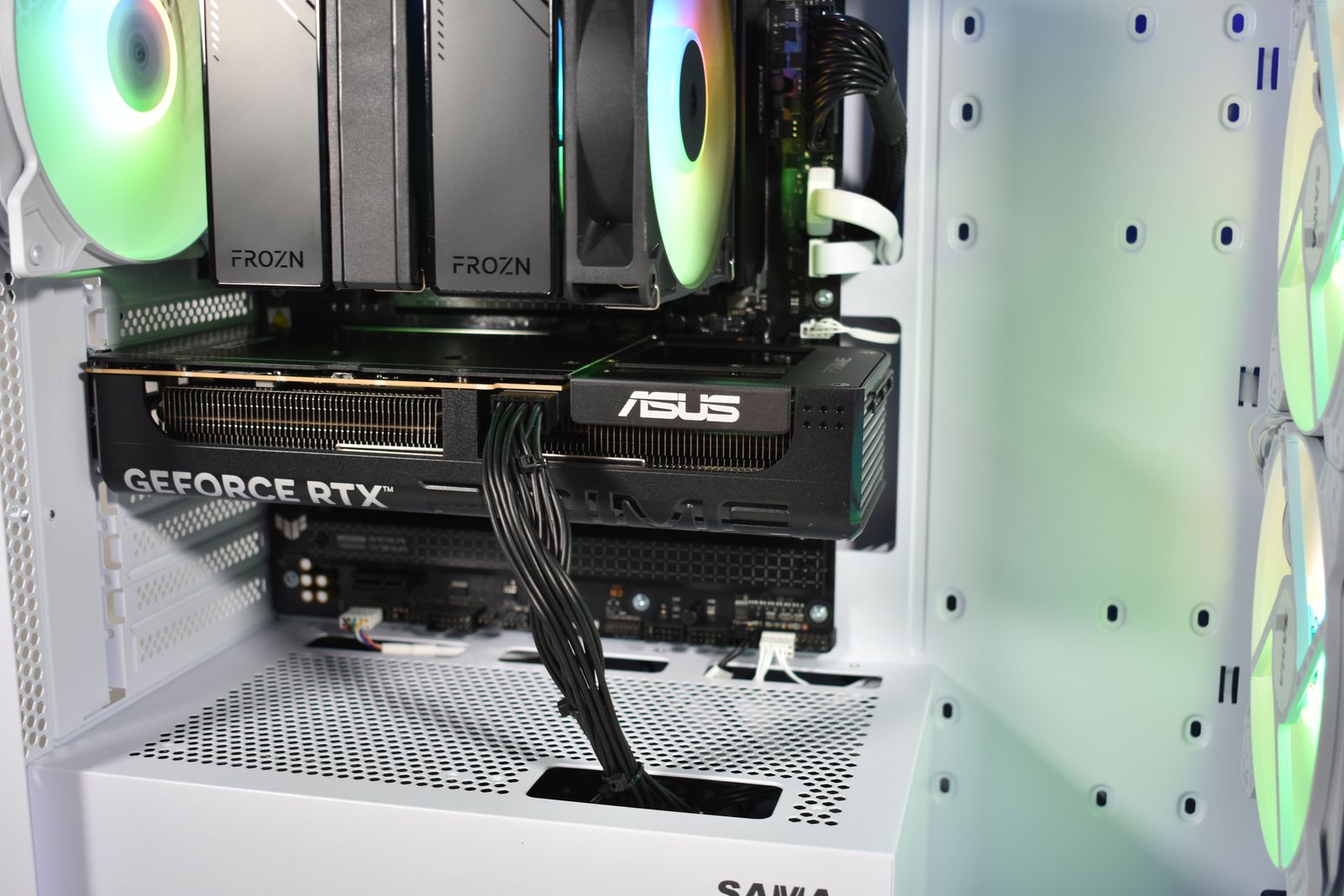 High-airflow design with a total of 5 fans(3x 140mm ARGB) synced through a button on the case and have many many different lighting modes!