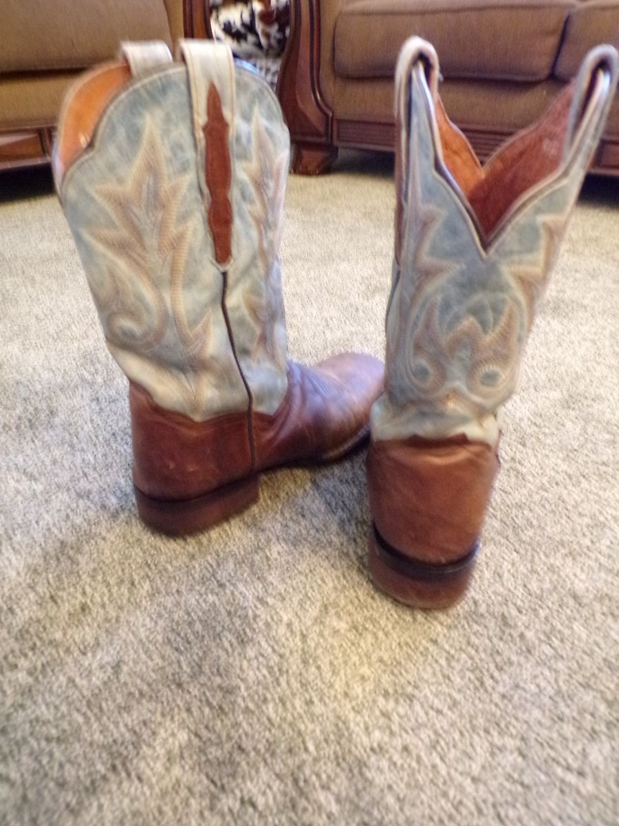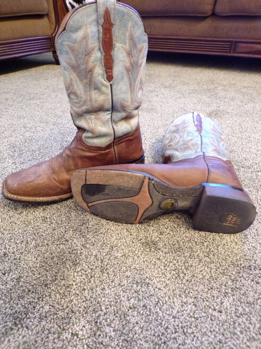 VenmoThese leather boots with their light blue shaft are sure to catch the eyes of onlookers and with part rubber part leather soles, they are ready for whatever you wish to do.