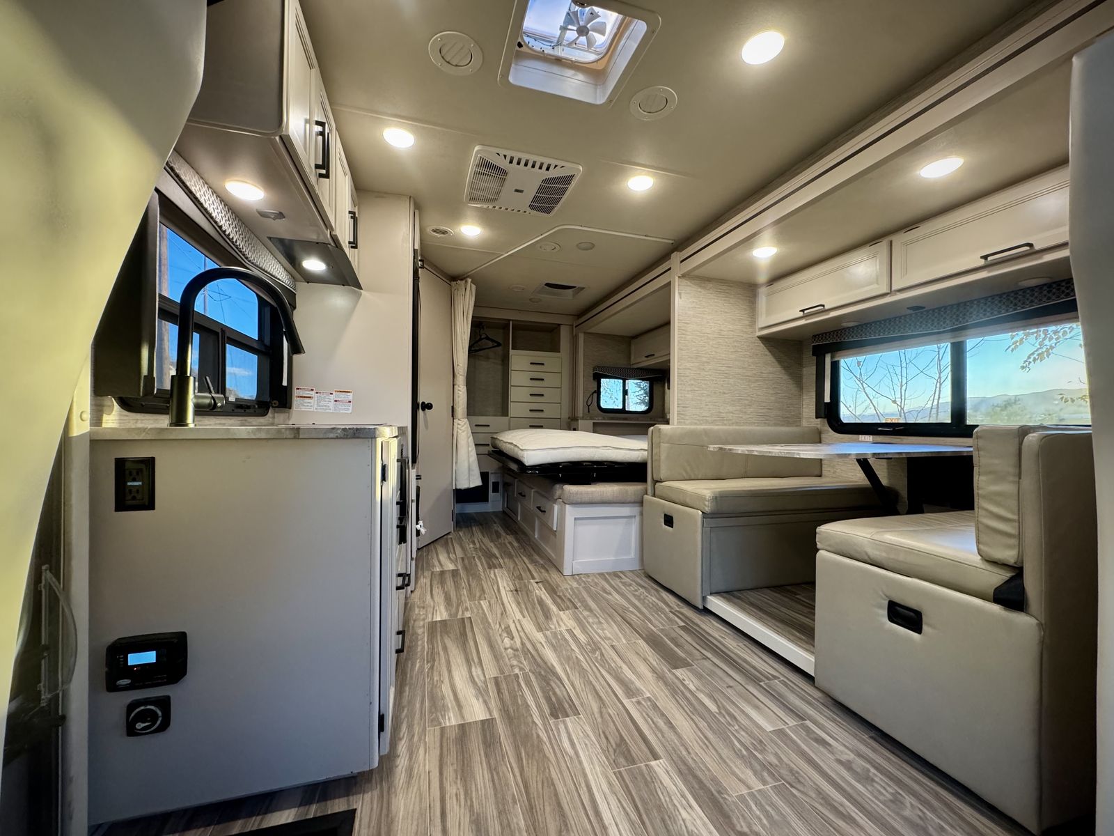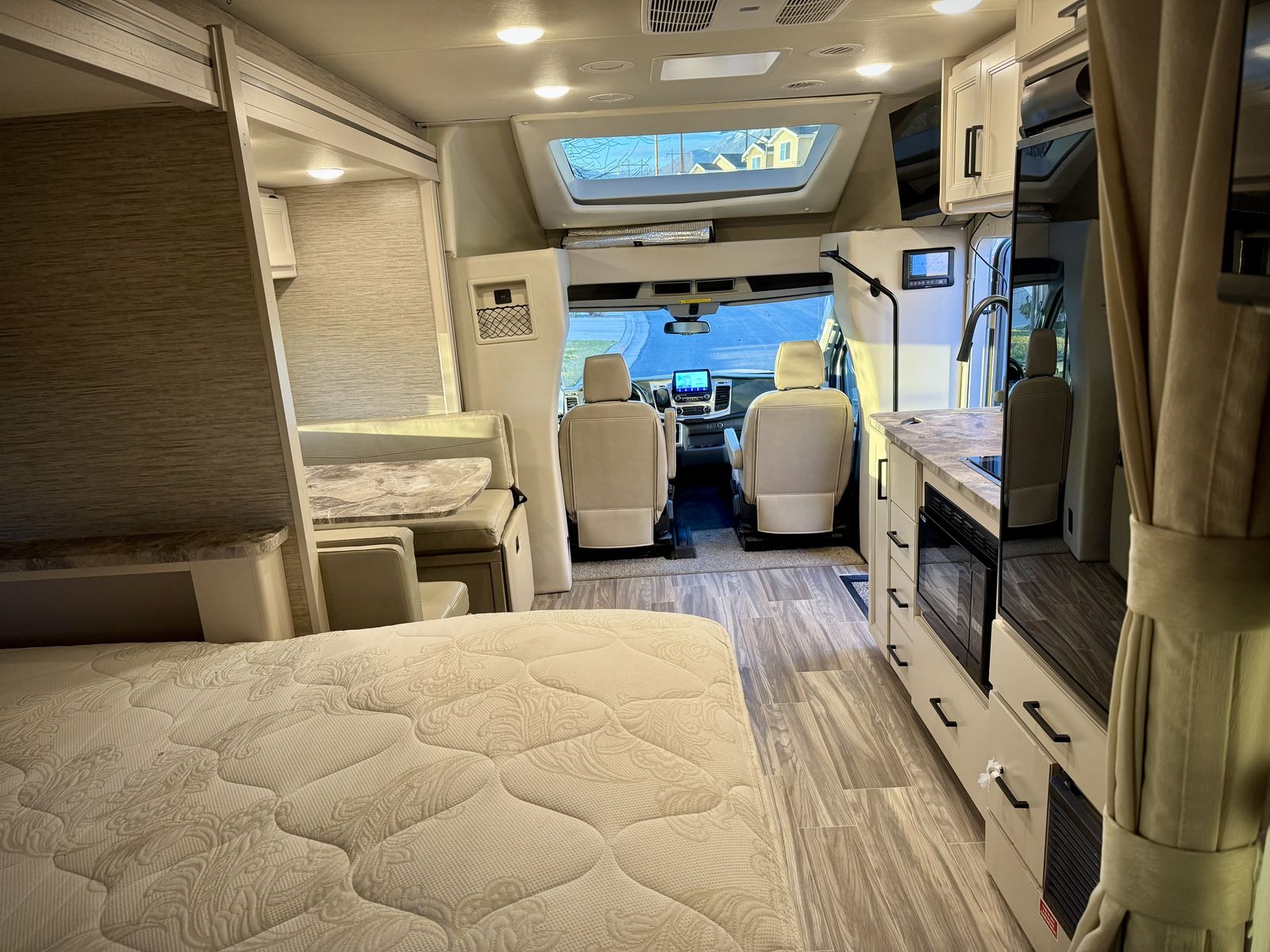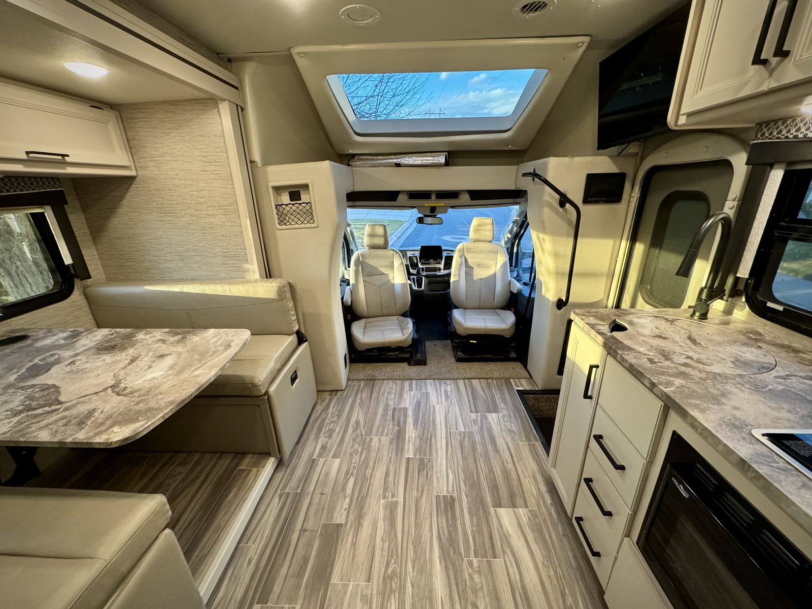Full kitchen and bathroom, power sunroof, heated tanks, amazing sound system, swivel captains chairs that are also heated, storage space galore, so many options and extras Blackout insulted magnetic window covers, Weather-tech mats, etc.