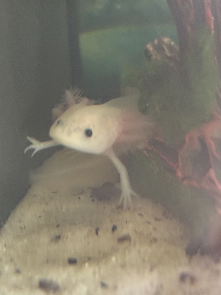 • Size: 4” • Morphs:– 1 Rare GFP Leucistic (glows neon green under blacklight)– 4 Leucistic “pink” axolotls