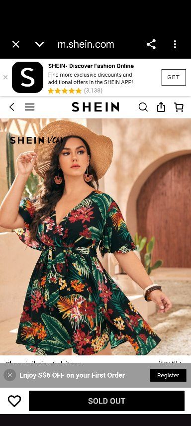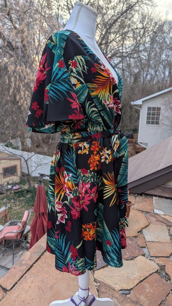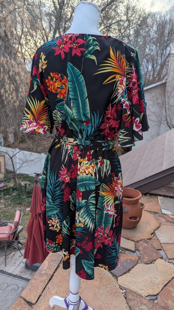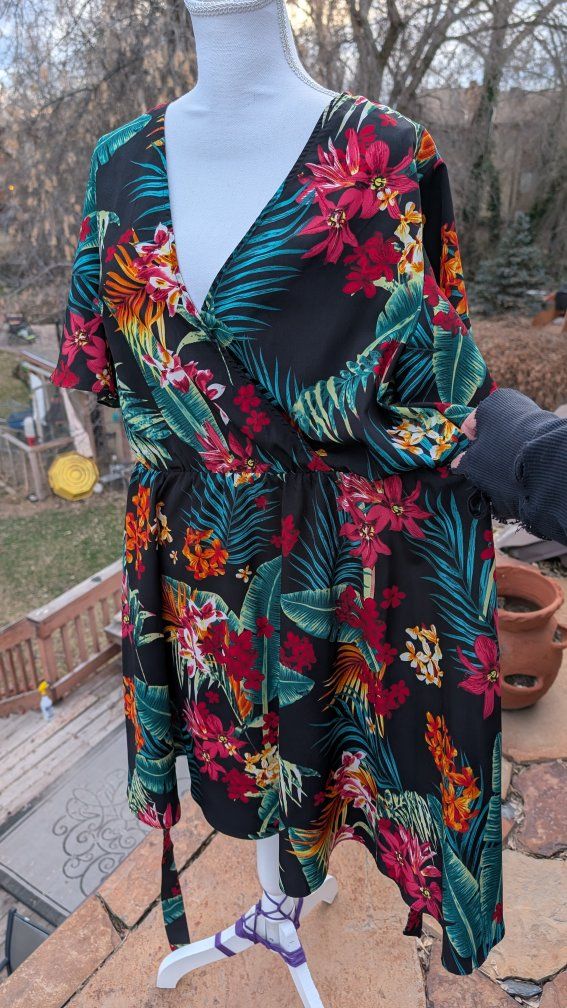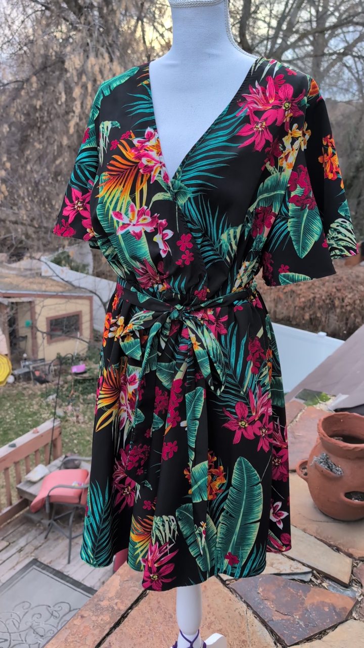 ZelleSHEIN VCAY Plus Tropical Print Surplice Neck Belted Dress size 1XL