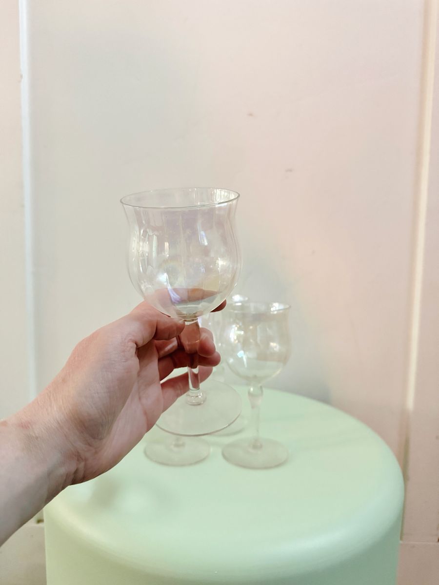 VenmoSet of 4 Vintage Mid Century Iridescent Tulip Wine Goblets Glasses Optic Panel