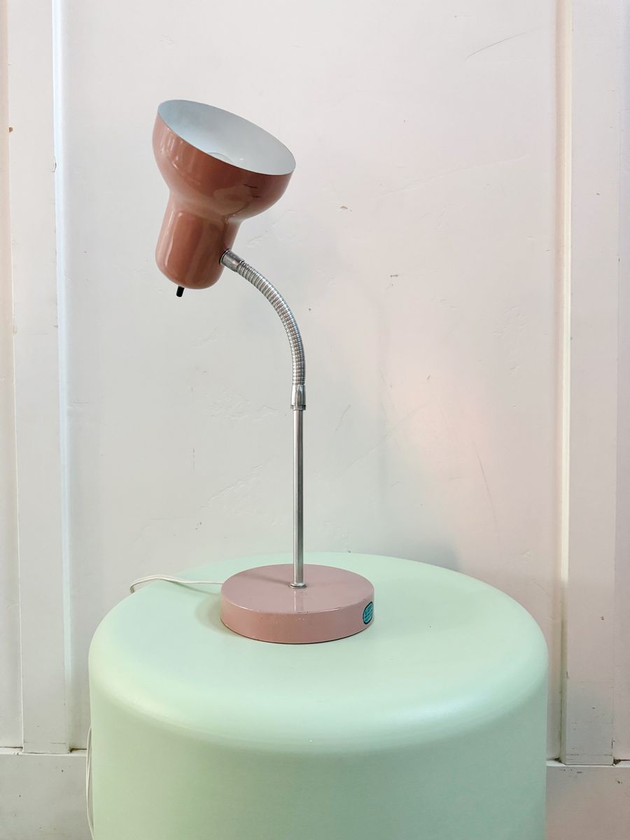VenmoVintage 1980’s Pink Metal Adjustable Gooseneck Table Lamp w/Silver Accents