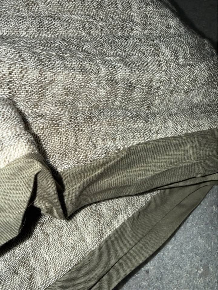 VenmoThis is a brand-new with tags Pottery Barn Queen Duvet cover. It is taupe/grey/greenish on top and a greenish color underneath.