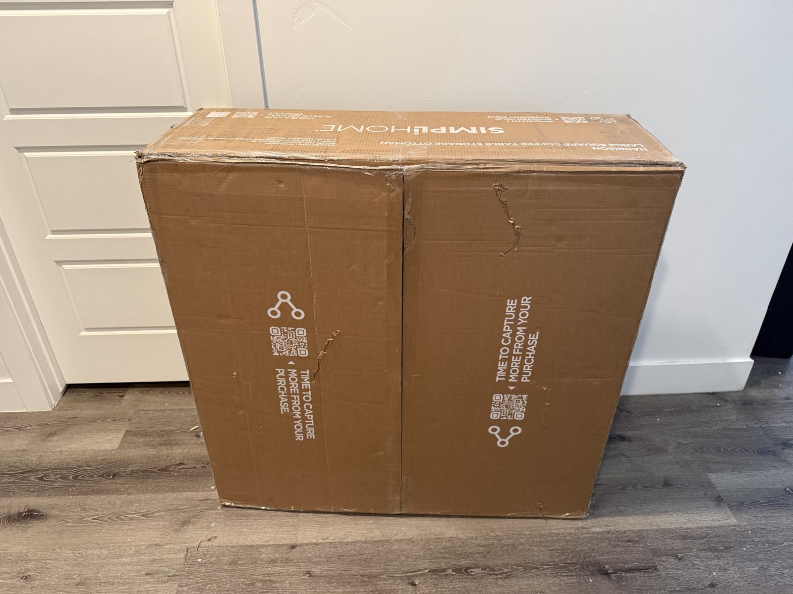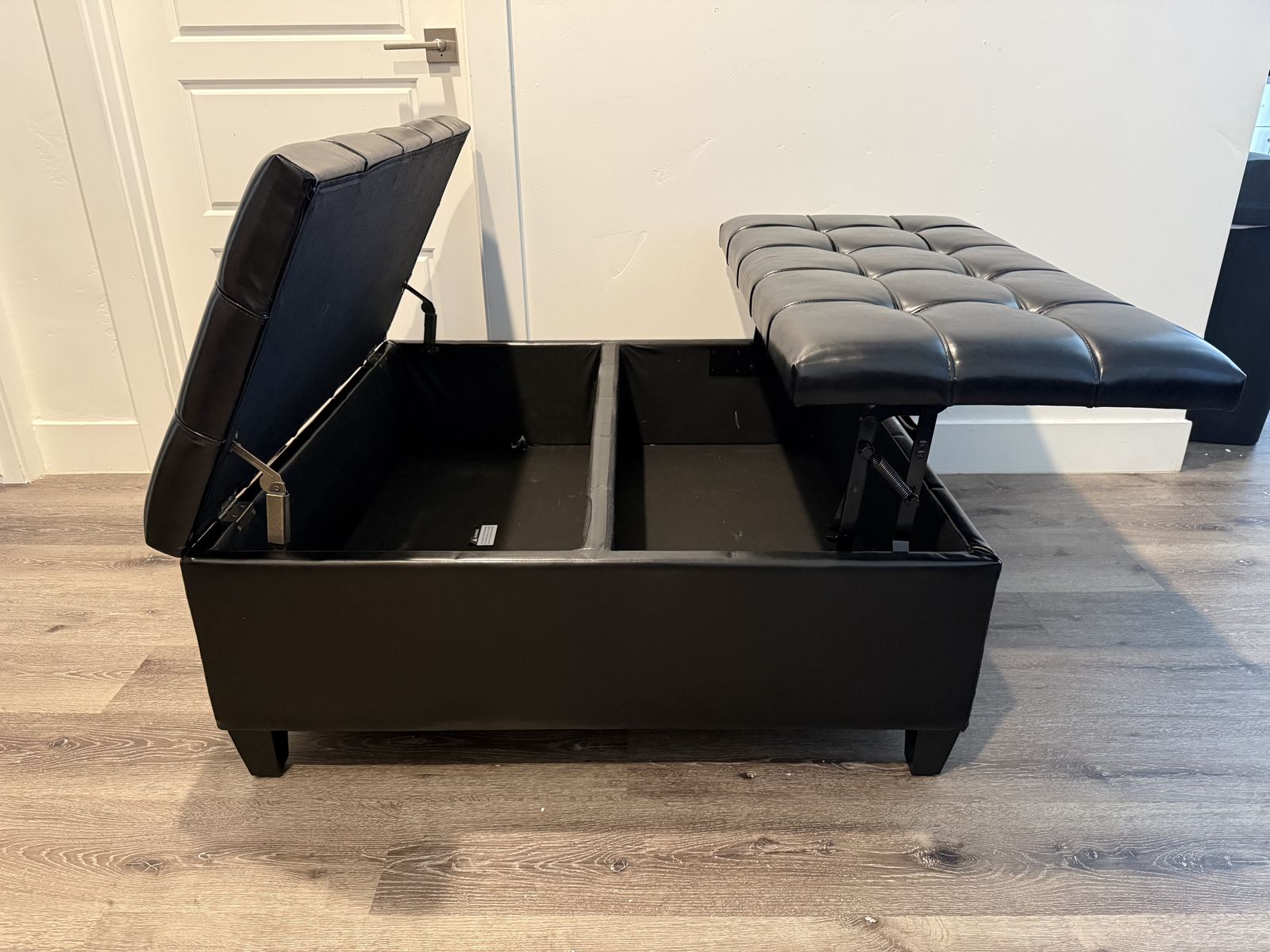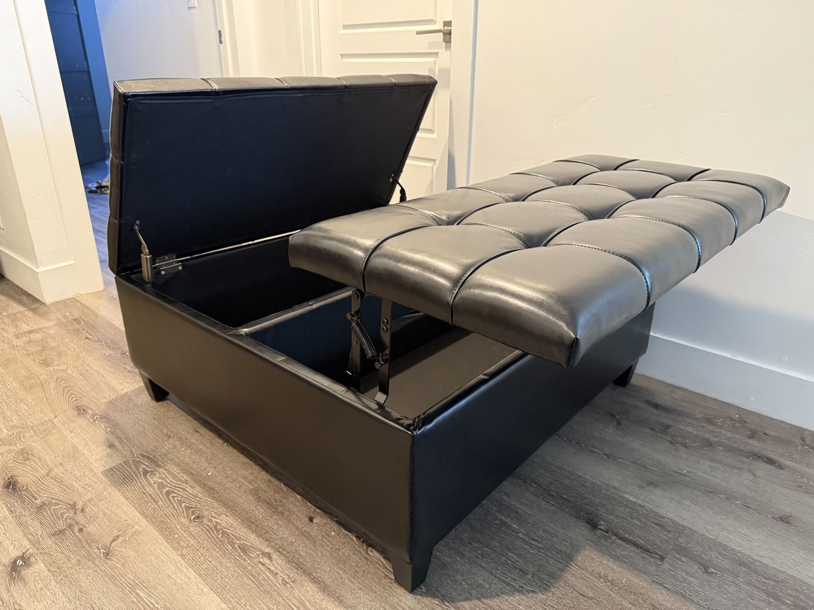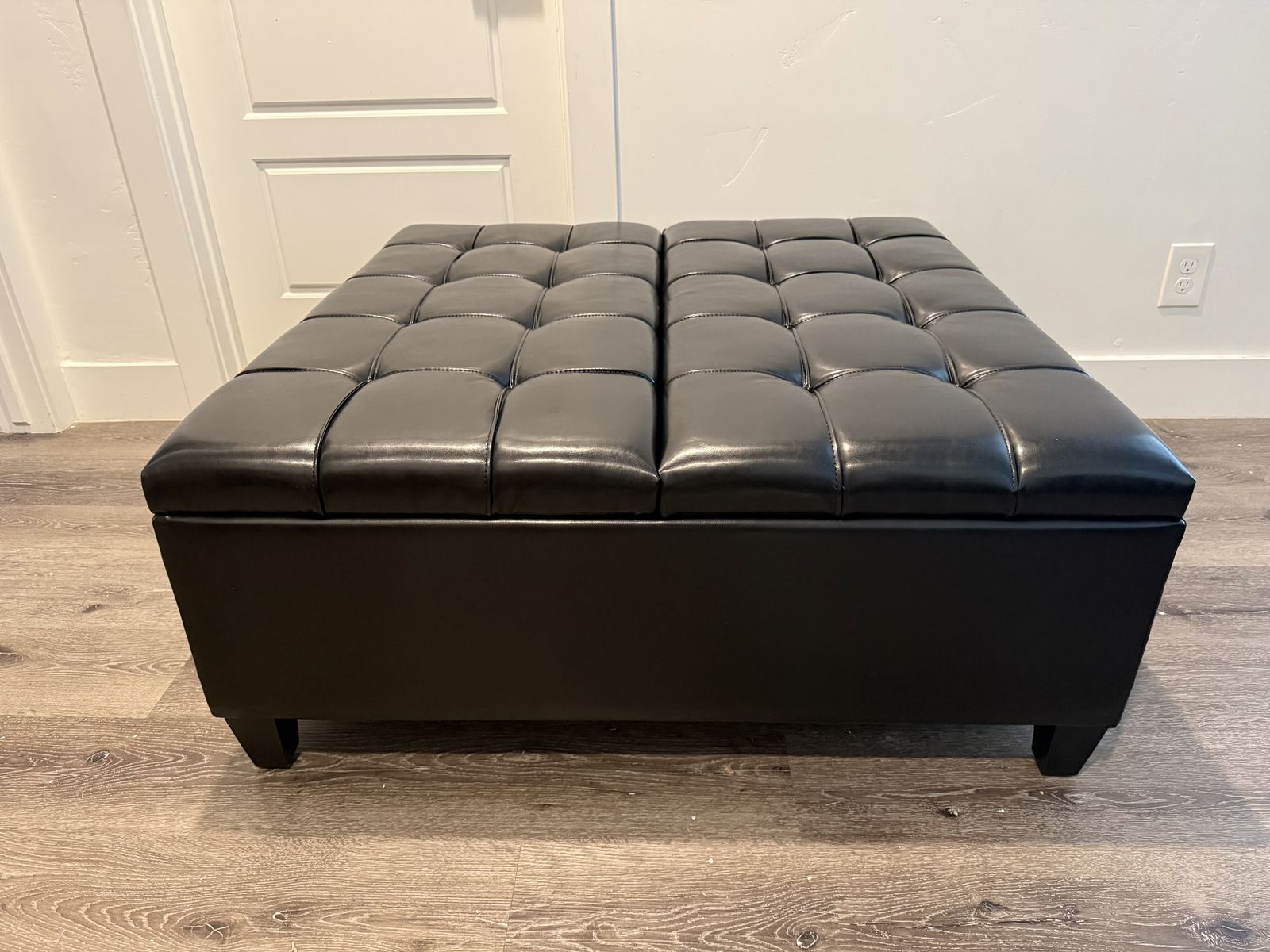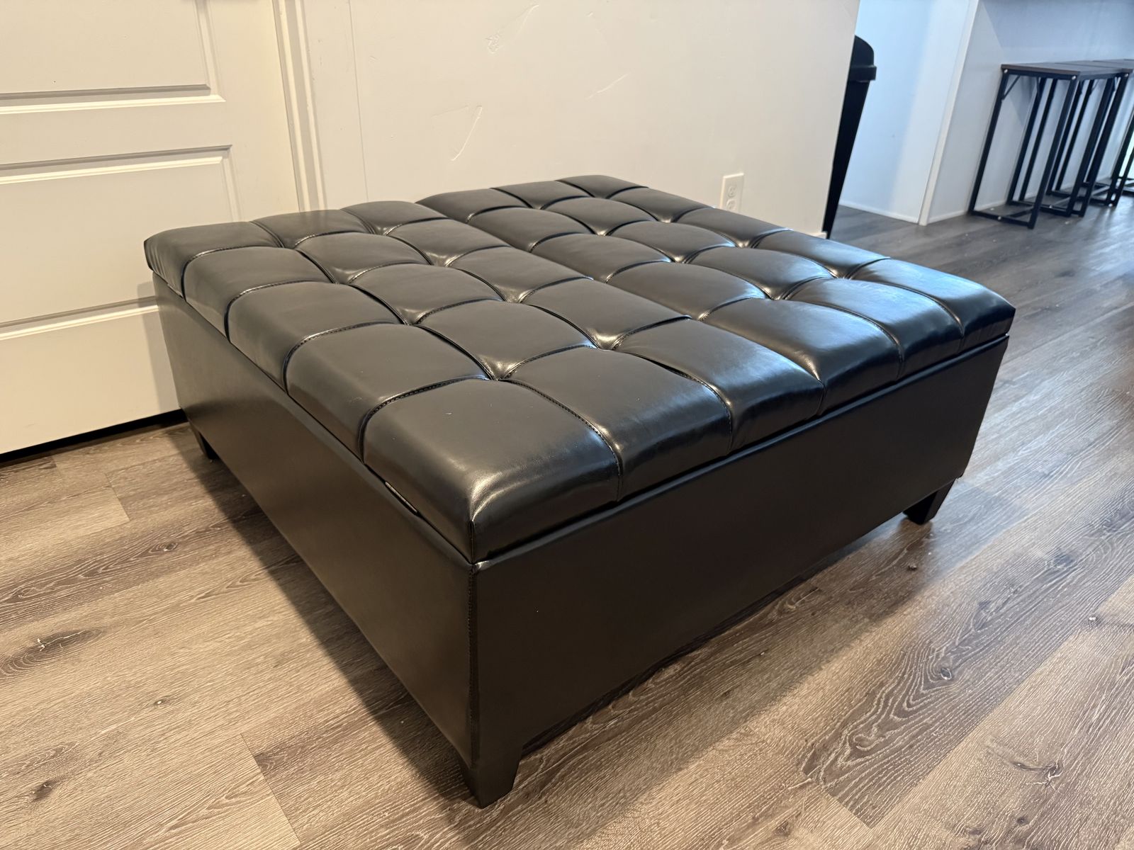 VenmoBrand New SIMPLIHOME Harrison Large Coffee Table Storage Ottoman - 40 inch Wide Upholstered Vegan Leather Square Lift-Top Ottoman in Distressed Black, Transitional Bench for Living Room with Sturdy Base