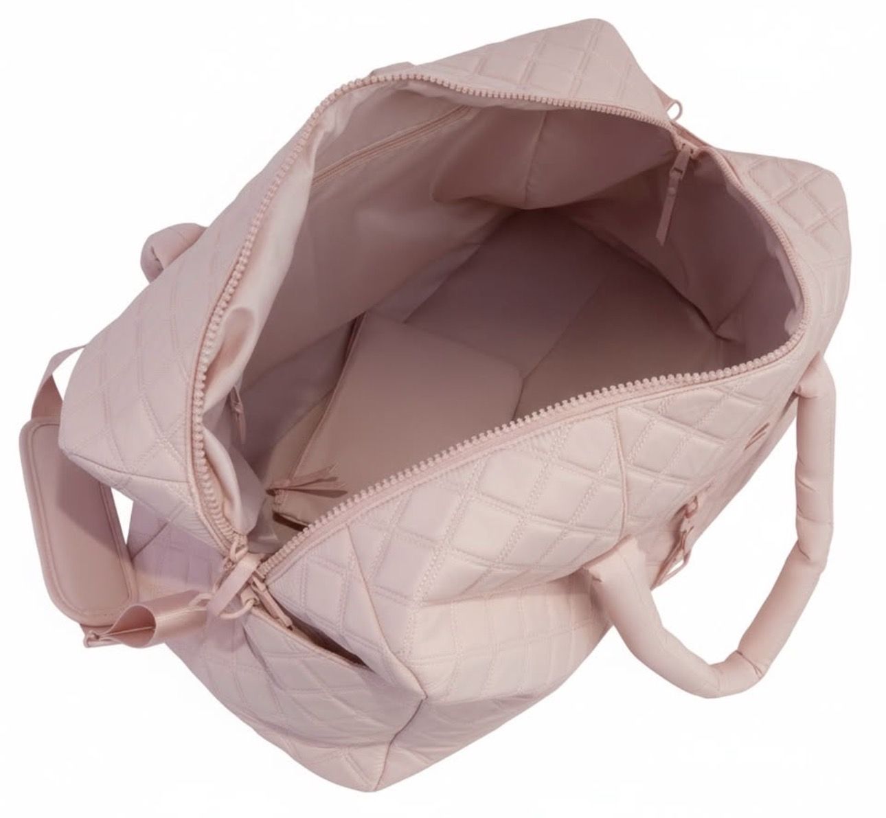 VenmoJoan & David “The Paige” 22” Diamond Quilted Puffer Sport Nylon Duffel Weekender Bag in Blush Pink
