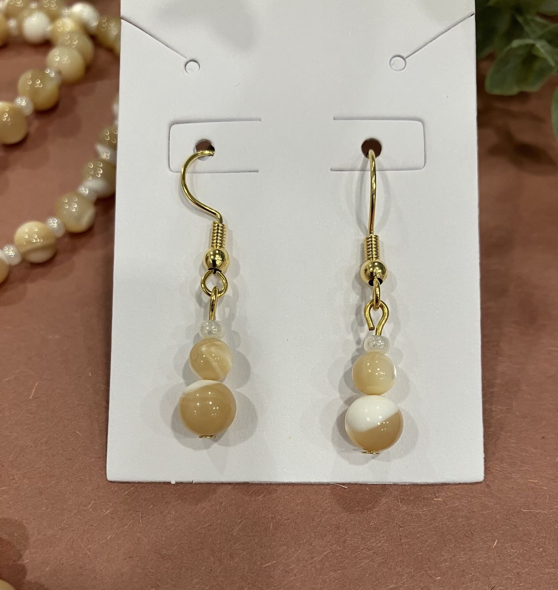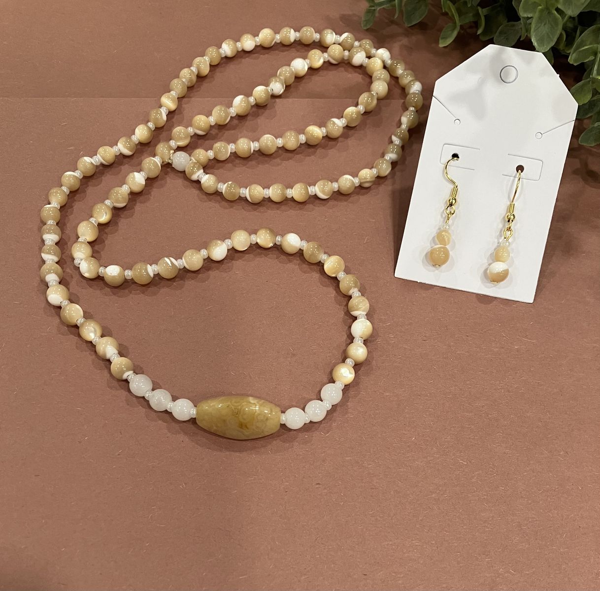 VenmoHandmade, beautiful beaded, beige and cream colored shell necklace and matching earrings. Necklace is a generous 33 inches long, so no need for a clasp for easy, comfortable wear. Ear wires on dainty drop style earrings are gold plated. Gift box included. Local meetup or can mail with ship fee.