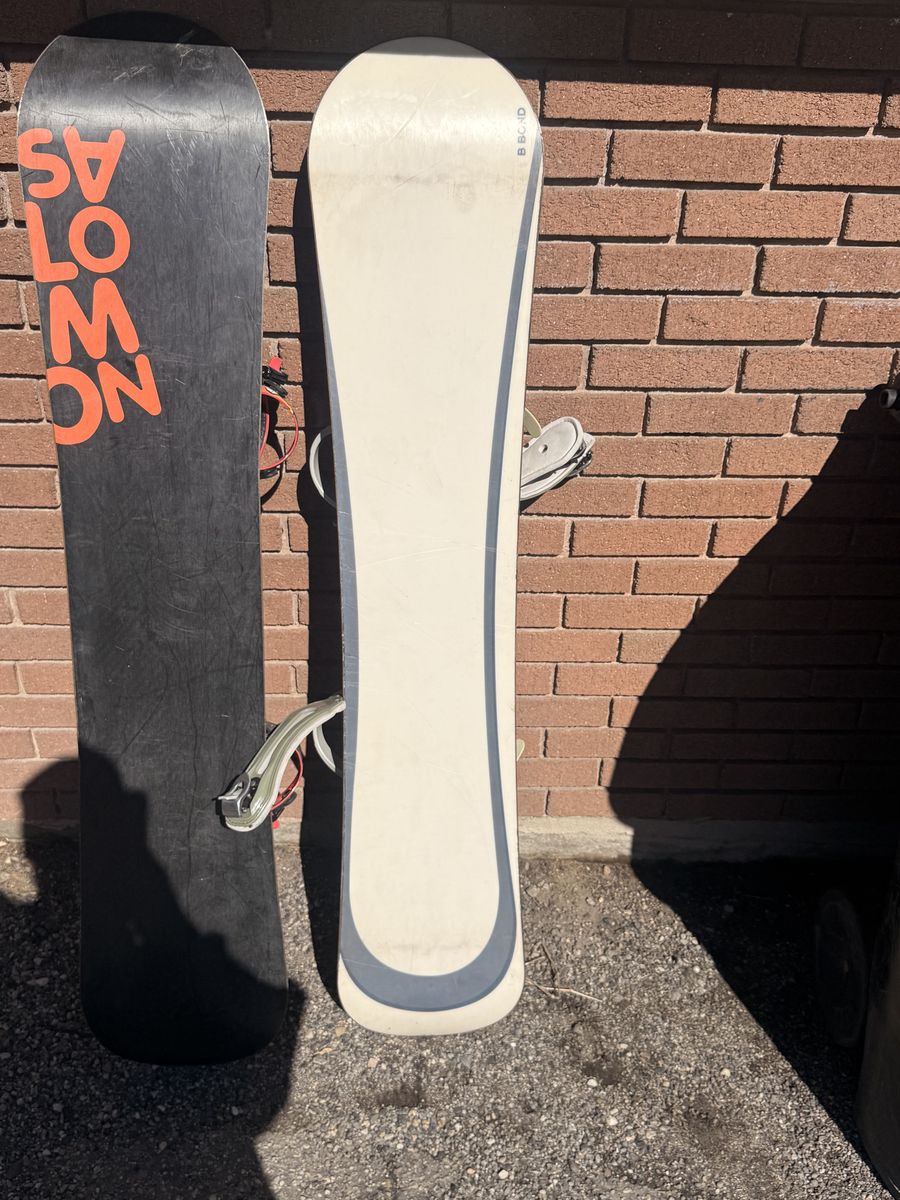 VenmoI have 2 snowboard the yellow one has t Tech N9ne bindings Ands it's 59 long the grey one is 57/ I don't know what bindings are on it