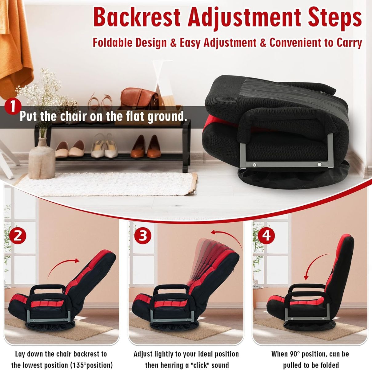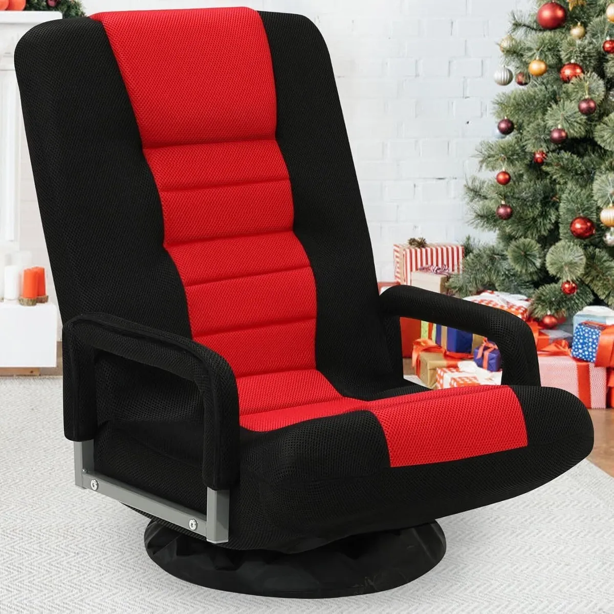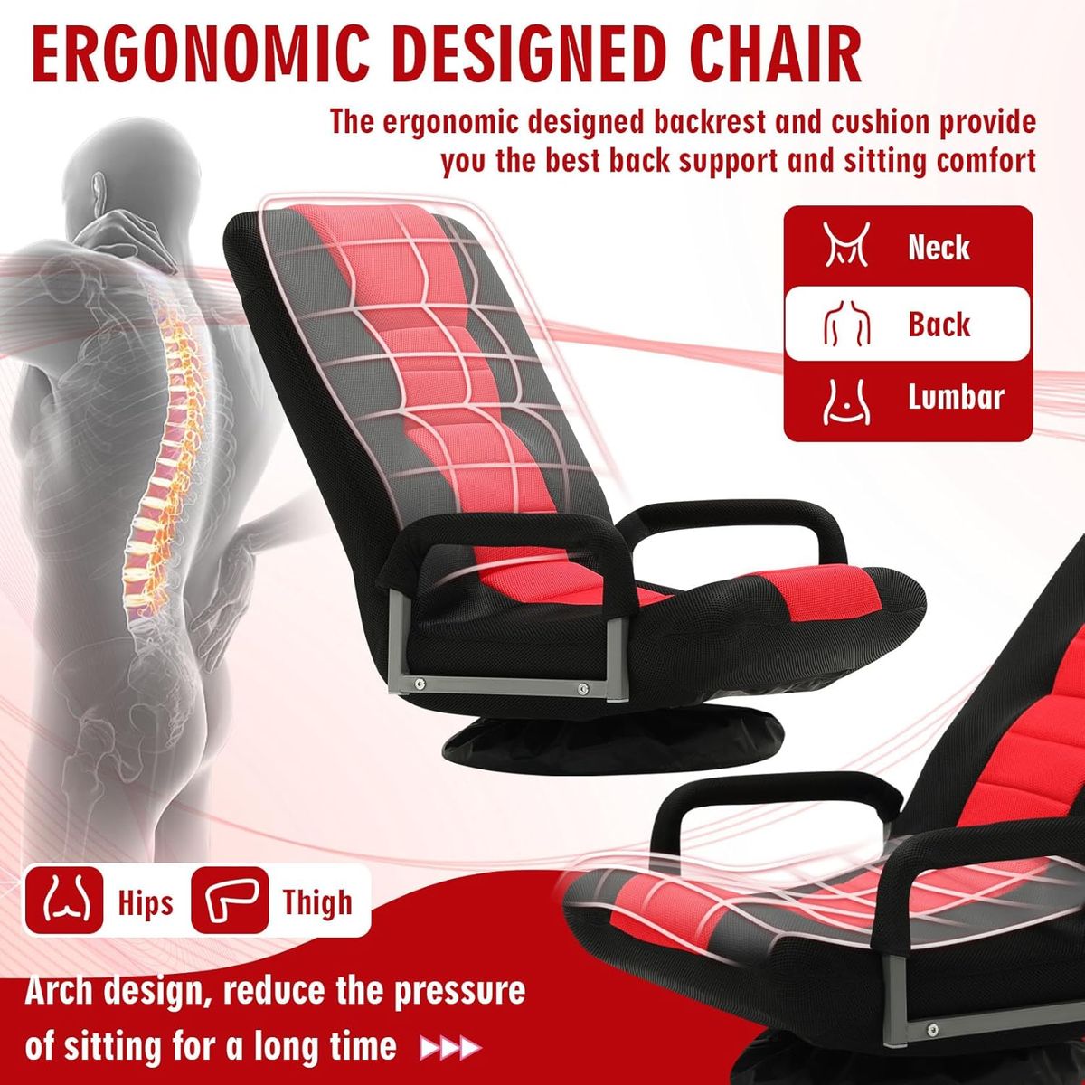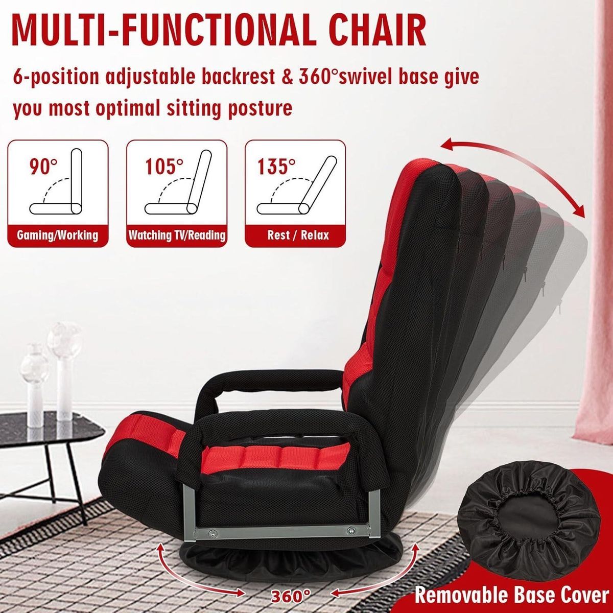 Retailer's Title: Swivel Floor Gaming Chair w/Armrests,Folding Video Reclining Sofa w/6 Adjustable Position, Padded Backrest & Cushion, Lazy Lounger Couch for E-Sports, Reading, Relaxing, Watching TV, Red