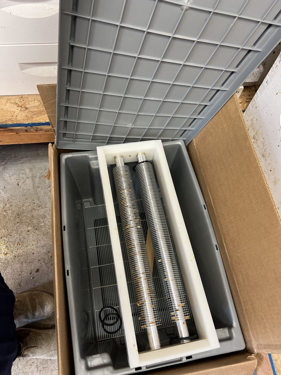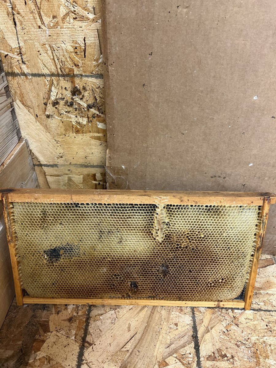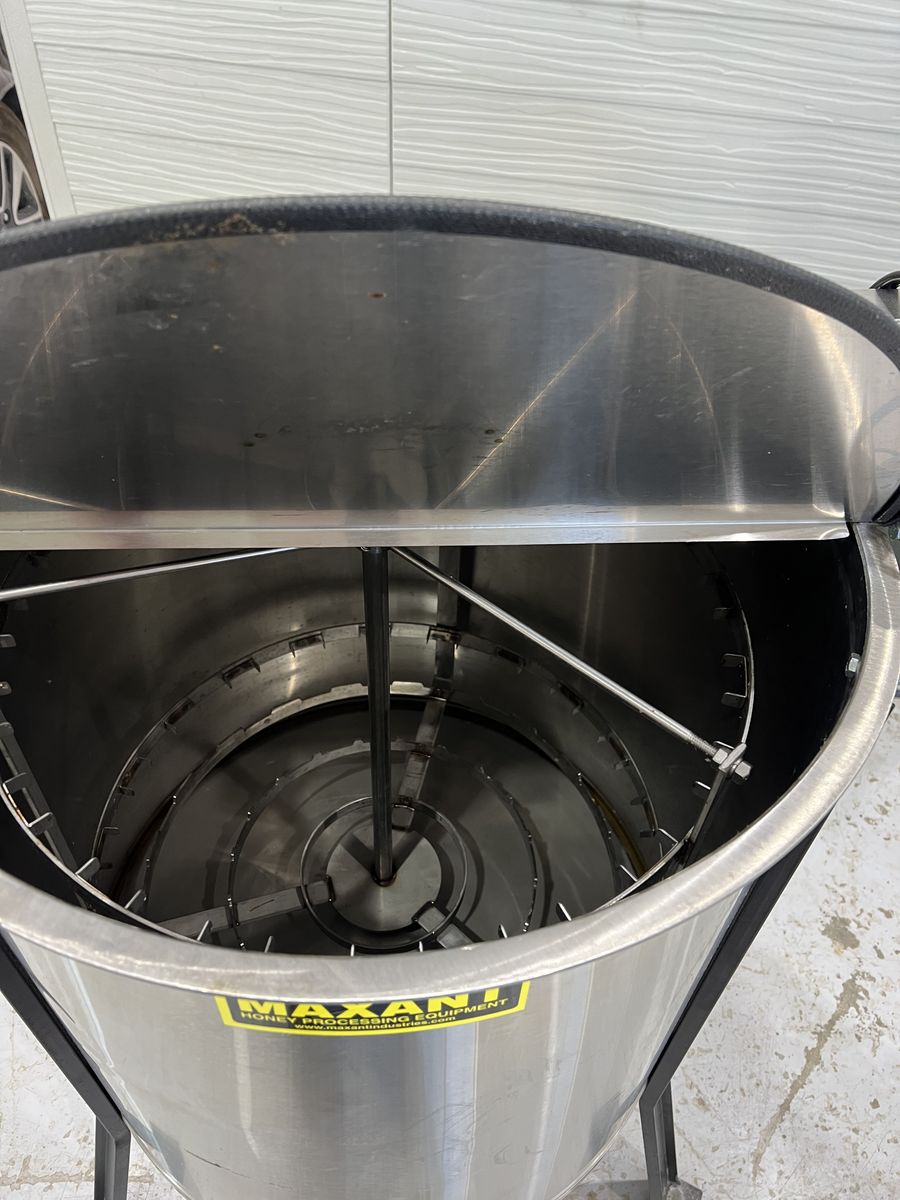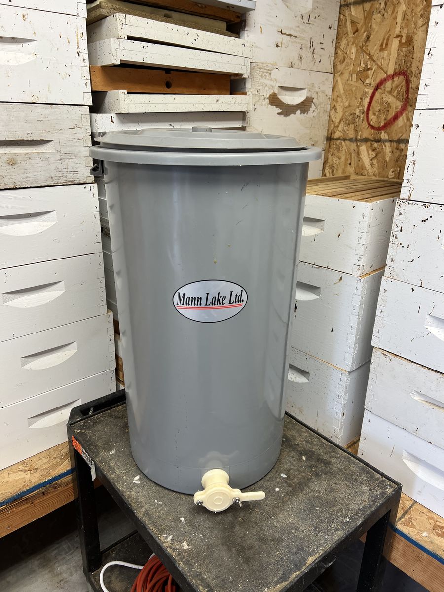 I’ve got two honey extractors. A Maxant American made stainless steel 20 frame extractor. And a 2 frame hand crank extractor. There are some signs of mice getting into the boxes. And there are 3/4 inch holes in some of the brood boxes, but I have a plug to place in the hole.